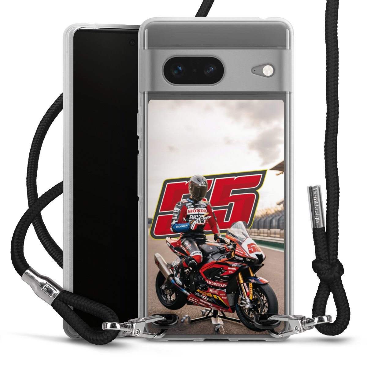Bei dieser Handyhülle nutzen wir das solide Direktdruck-Verfahren, weshalb der Druckbereich ausschließlich die Rückseite umfasst und der Rand hingegen unbedruckt bleibt. Das Case zum Umhängen kann sowohl unbedruckt, als auch vollflächig oder partiell bedruckt bestellt werden. Wähle für Dein Design entweder eines unserer exklusiven Shop-Motive, oder werde kreativ und gestalte Dein Wunschdesign zum Beispiel mit Fotos und Overlays selbst. Designe Dir Dein persönliches Trend-Accessoire und setze ein individuelles Statement auf den Straßen!