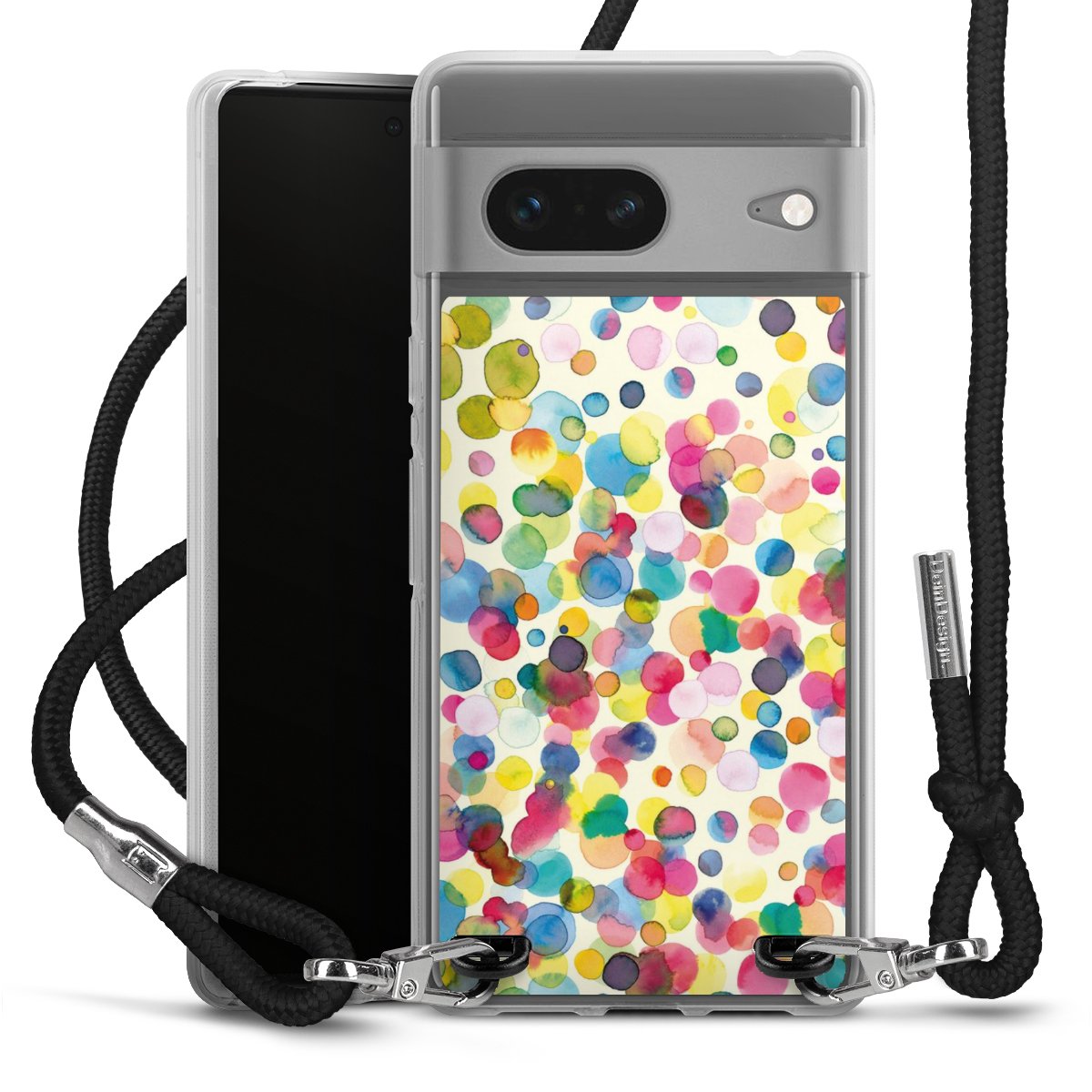 Habe Dein Handy, dank der flexiblen Silikon Handyhülle zum Umhängen mit der Handykette aus Stoff, immer griffbereit.