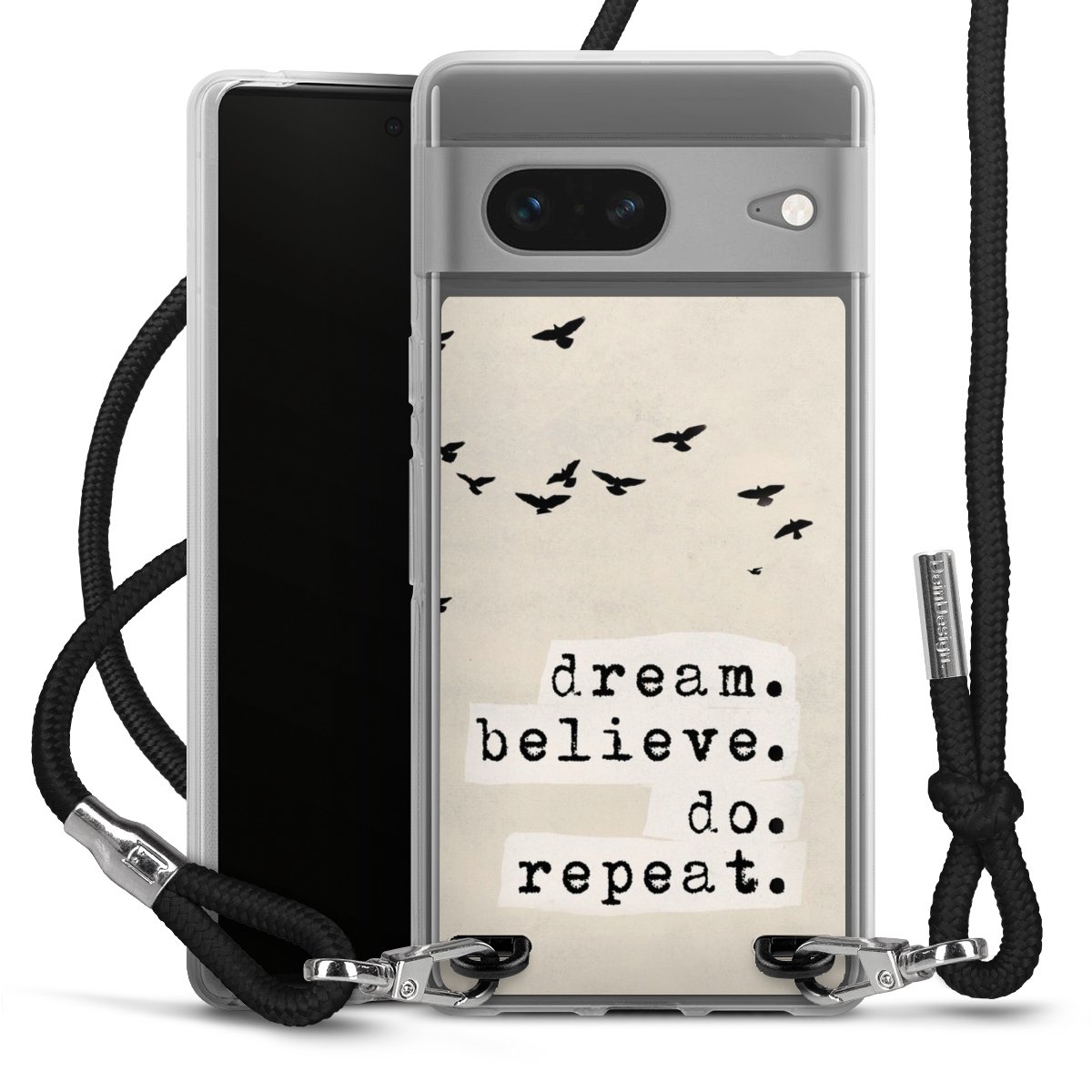 Bei dieser Handyhülle nutzen wir das solide Direktdruck-Verfahren, weshalb der Druckbereich ausschließlich die Rückseite umfasst und der Rand hingegen unbedruckt bleibt. Das Case zum Umhängen kann sowohl unbedruckt, als auch vollflächig oder partiell bedruckt bestellt werden. Wähle für Dein Design entweder eines unserer exklusiven Shop-Motive, oder werde kreativ und gestalte Dein Wunschdesign zum Beispiel mit Fotos und Overlays selbst. Designe Dir Dein persönliches Trend-Accessoire und setze ein individuelles Statement auf den Straßen!