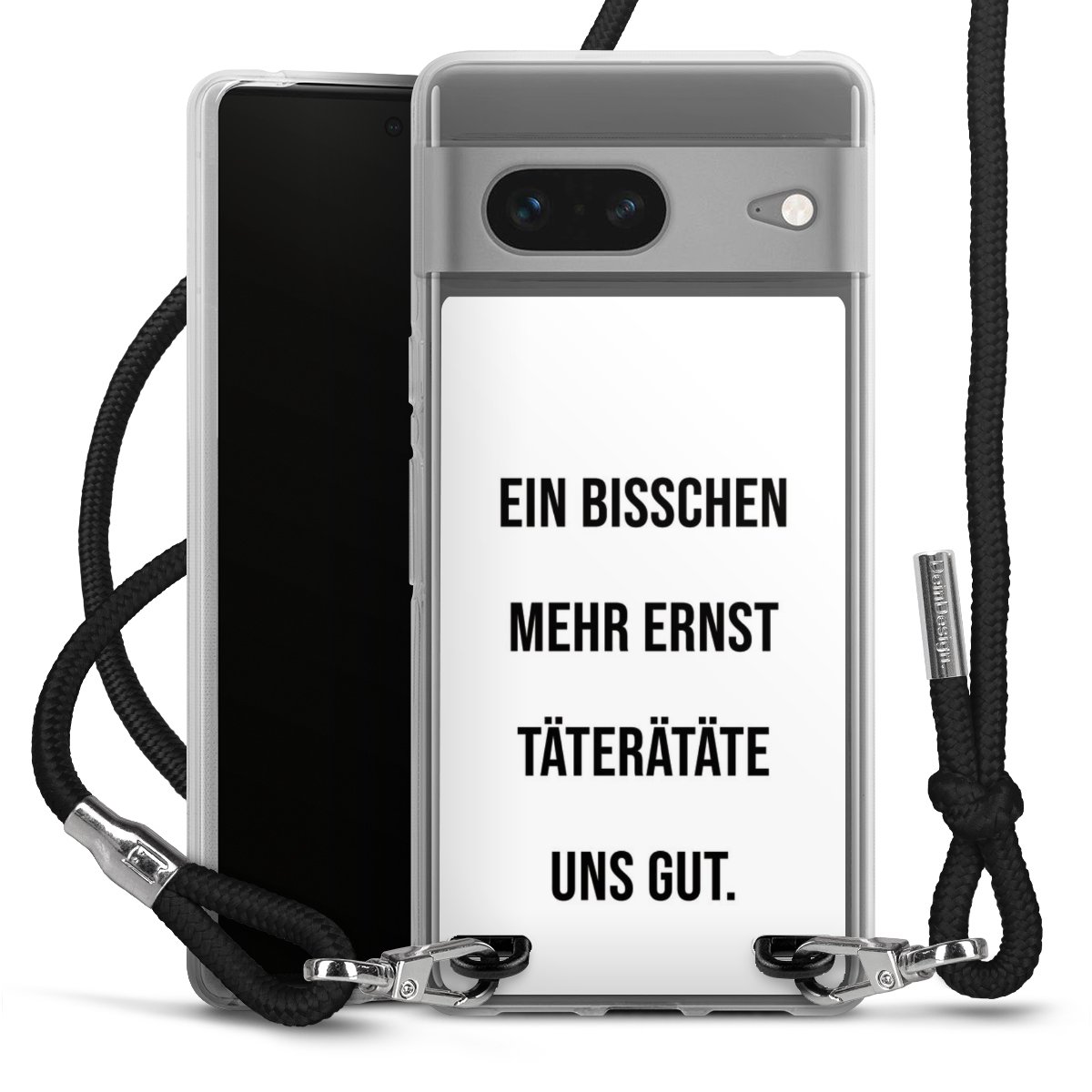 Die transparente Silikonhülle besteht aus flexiblen TPU (thermoplastisches Polyurethan) und bietet zugleich robusten Schutz. Durch das langlebige, bruchsichere Material ist die Hülle biegsam und formbeständig zugleich. Das stylische Trend-Accessoire liegt griffig in der Hand und wird optimal von der Handykette aus Stoff (Polyester) ergänzt. Das geflochtene Stoffband ist ca. 1,70 Meter lang mit einem Durchmesser von ca. 0,5cm. Aufgrund der besonderen Knotentechnik ist das Band durch einfaches Ziehen in der Länge verstellbar, damit Du es individuell nach Deinen Wünschen anpassen kannst. Das praktische Case zum Umhängen ist mit dem Stoffband in den Farben Schwarz, Rot, Rosa, Grau, Senfgelb, Bordeaux und Royalblau erhältlich. Die Enden des Stoffbandes sind mit metallischen Endkappen umfasst und somit sicher vor dem Ausfransen geschützt.