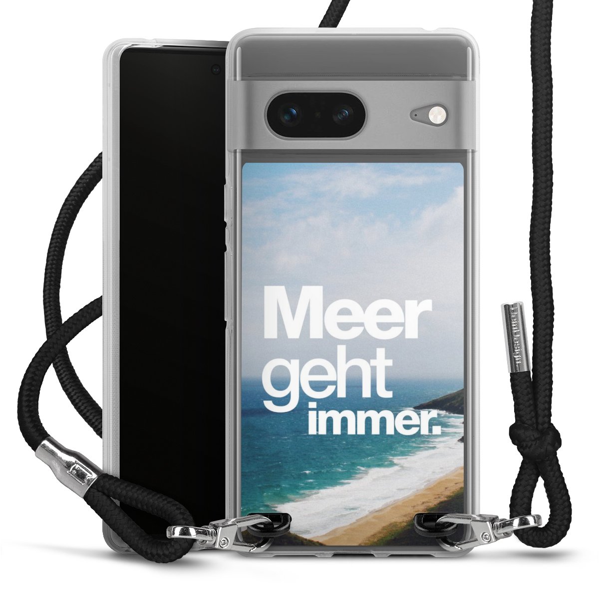 Bei dieser Handyhülle nutzen wir das solide Direktdruck-Verfahren, weshalb der Druckbereich ausschließlich die Rückseite umfasst und der Rand hingegen unbedruckt bleibt. Das Case zum Umhängen kann sowohl unbedruckt, als auch vollflächig oder partiell bedruckt bestellt werden. Wähle für Dein Design entweder eines unserer exklusiven Shop-Motive, oder werde kreativ und gestalte Dein Wunschdesign zum Beispiel mit Fotos und Overlays selbst. Designe Dir Dein persönliches Trend-Accessoire und setze ein individuelles Statement auf den Straßen!