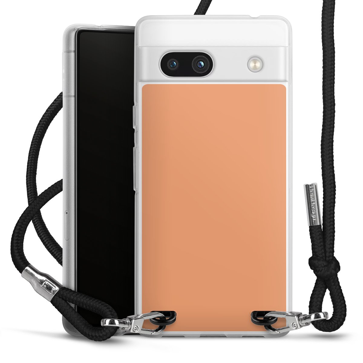 Die transparente Silikonhülle besteht aus flexiblen TPU (thermoplastisches Polyurethan) und bietet zugleich robusten Schutz. Durch das langlebige, bruchsichere Material ist die Hülle biegsam und formbeständig zugleich. Das stylische Trend-Accessoire liegt griffig in der Hand und wird optimal von der Handykette aus Stoff (Polyester) ergänzt. Das geflochtene Stoffband ist ca. 1,70 Meter lang mit einem Durchmesser von ca. 0,5cm. Aufgrund der besonderen Knotentechnik ist das Band durch einfaches Ziehen in der Länge verstellbar, damit Du es individuell nach Deinen Wünschen anpassen kannst. Das praktische Case zum Umhängen ist mit dem Stoffband in den Farben Schwarz, Rot, Rosa, Grau, Senfgelb, Bordeaux und Royalblau erhältlich. Die Enden des Stoffbandes sind mit metallischen Endkappen umfasst und somit sicher vor dem Ausfransen geschützt.