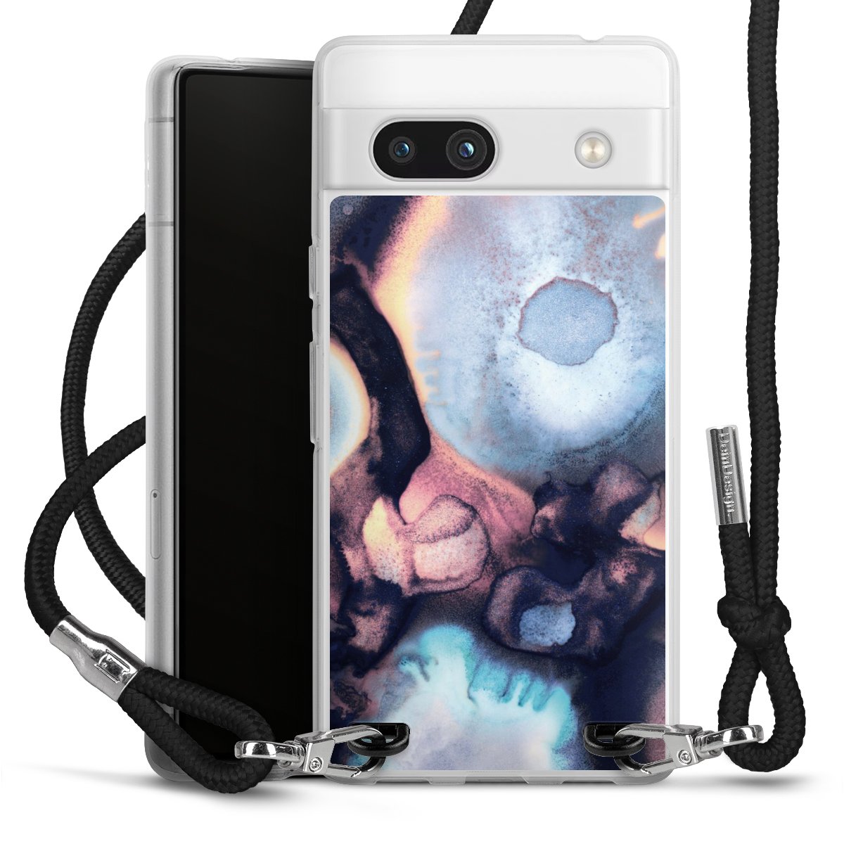 Bei dieser Handyhülle nutzen wir das solide Direktdruck-Verfahren, weshalb der Druckbereich ausschließlich die Rückseite umfasst und der Rand hingegen unbedruckt bleibt. Das Case zum Umhängen kann sowohl unbedruckt, als auch vollflächig oder partiell bedruckt bestellt werden. Wähle für Dein Design entweder eines unserer exklusiven Shop-Motive, oder werde kreativ und gestalte Dein Wunschdesign zum Beispiel mit Fotos und Overlays selbst. Designe Dir Dein persönliches Trend-Accessoire und setze ein individuelles Statement auf den Straßen!
