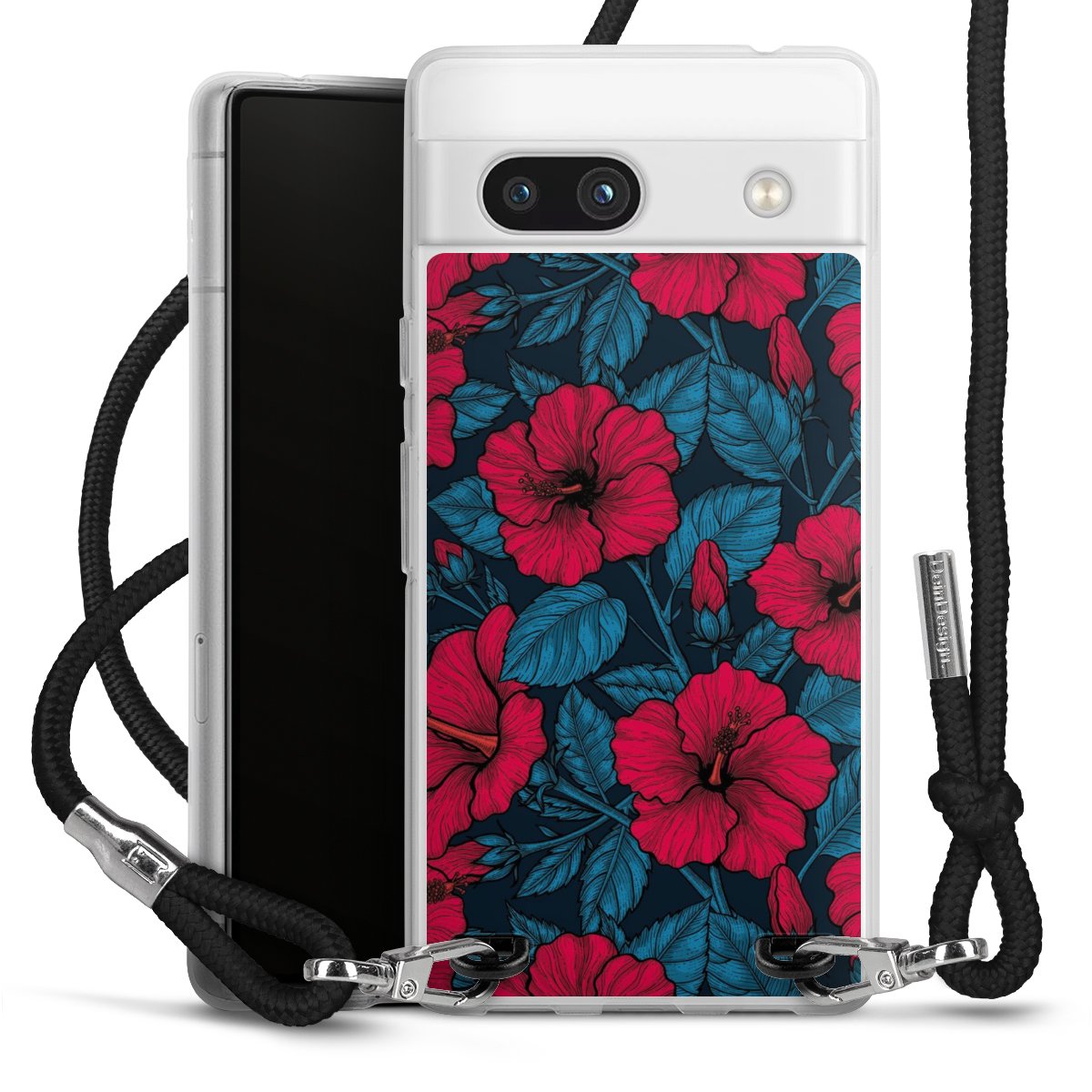 Die transparente Silikonhülle besteht aus flexiblen TPU (thermoplastisches Polyurethan) und bietet zugleich robusten Schutz. Durch das langlebige, bruchsichere Material ist die Hülle biegsam und formbeständig zugleich. Das stylische Trend-Accessoire liegt griffig in der Hand und wird optimal von der Handykette aus Stoff (Polyester) ergänzt. Das geflochtene Stoffband ist ca. 1,70 Meter lang mit einem Durchmesser von ca. 0,5cm. Aufgrund der besonderen Knotentechnik ist das Band durch einfaches Ziehen in der Länge verstellbar, damit Du es individuell nach Deinen Wünschen anpassen kannst. Das praktische Case zum Umhängen ist mit dem Stoffband in den Farben Schwarz, Rot, Rosa, Grau, Senfgelb, Bordeaux und Royalblau erhältlich. Die Enden des Stoffbandes sind mit metallischen Endkappen umfasst und somit sicher vor dem Ausfransen geschützt.
