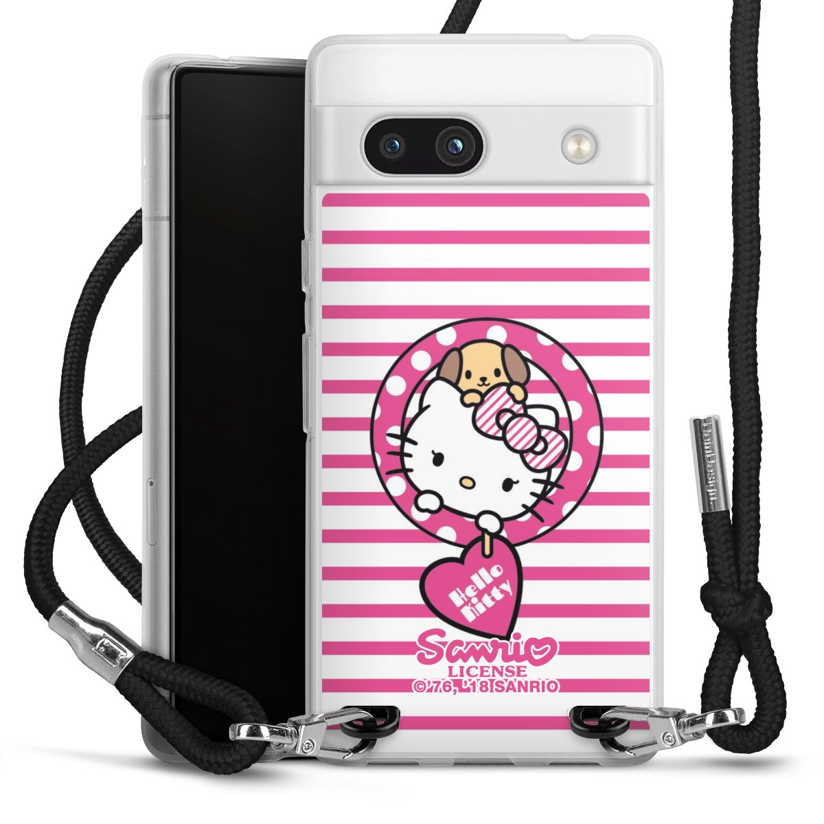 Habe Dein Handy, dank der flexiblen Silikon Handyhülle zum Umhängen mit der Handykette aus Stoff, immer griffbereit.