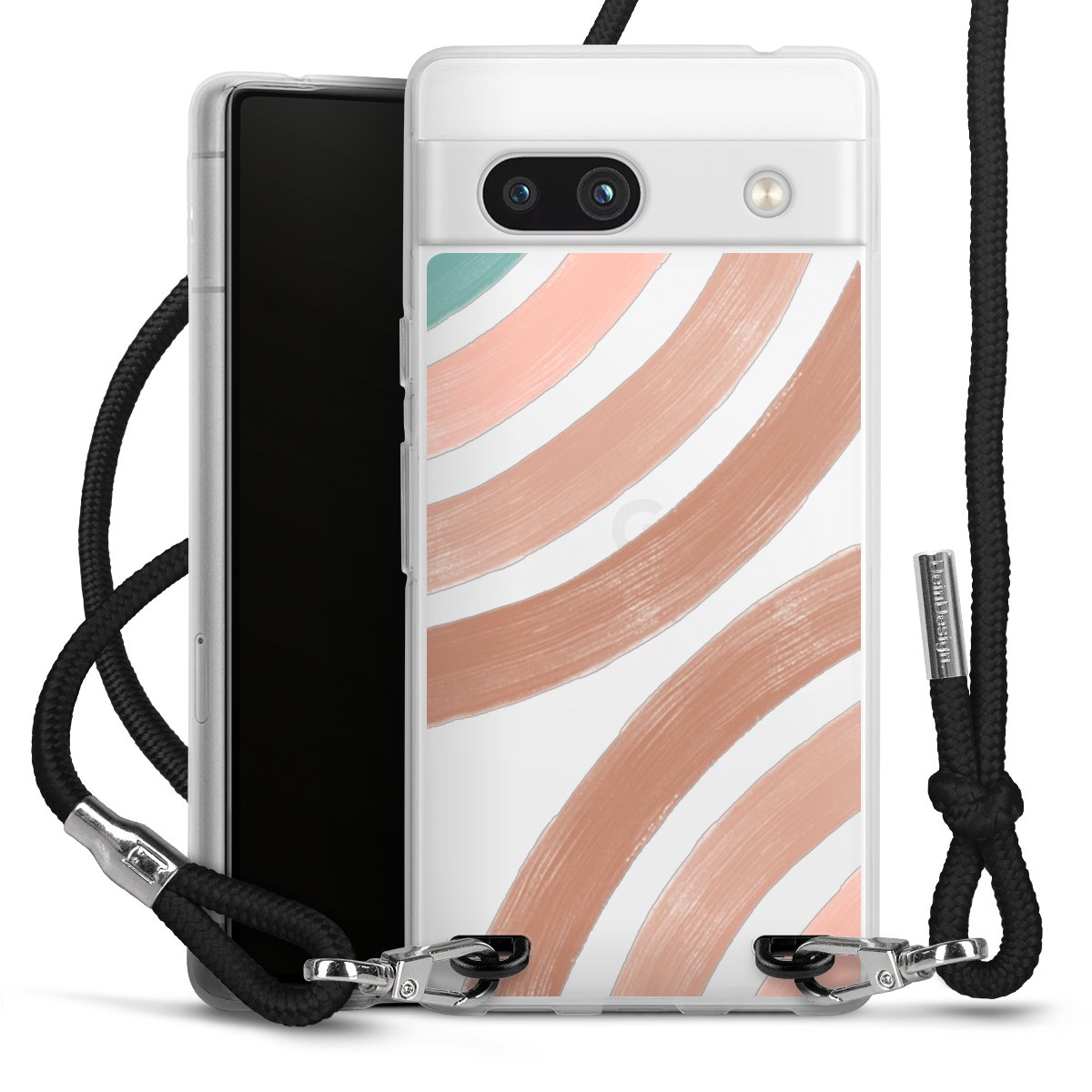 Habe Dein Handy, dank der flexiblen Silikon Handyhülle zum Umhängen mit der Handykette aus Stoff, immer griffbereit.