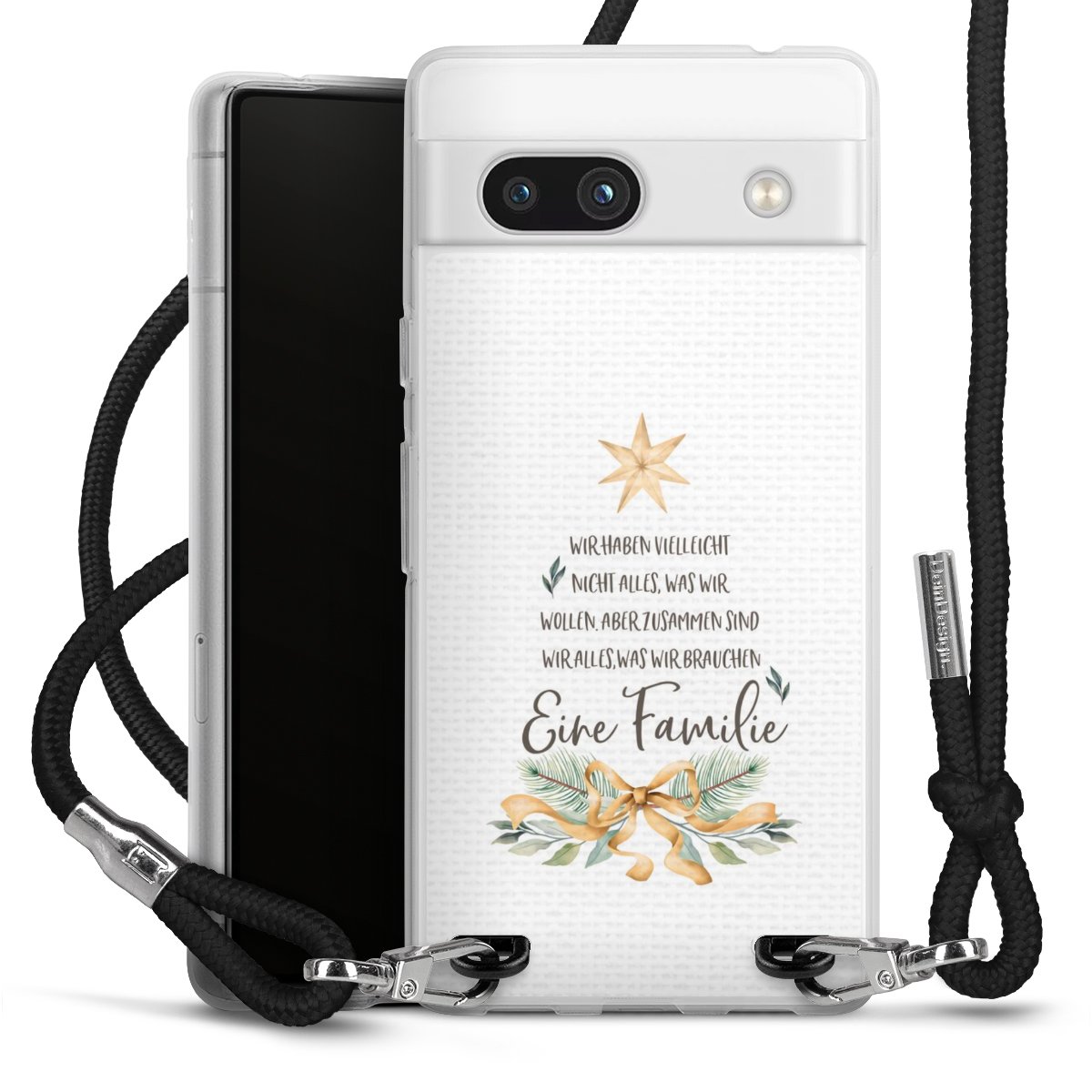 Die transparente Silikonhülle besteht aus flexiblen TPU (thermoplastisches Polyurethan) und bietet zugleich robusten Schutz. Durch das langlebige, bruchsichere Material ist die Hülle biegsam und formbeständig zugleich. Das stylische Trend-Accessoire liegt griffig in der Hand und wird optimal von der Handykette aus Stoff (Polyester) ergänzt. Das geflochtene Stoffband ist ca. 1,70 Meter lang mit einem Durchmesser von ca. 0,5cm. Aufgrund der besonderen Knotentechnik ist das Band durch einfaches Ziehen in der Länge verstellbar, damit Du es individuell nach Deinen Wünschen anpassen kannst. Das praktische Case zum Umhängen ist mit dem Stoffband in den Farben Schwarz, Rot, Rosa, Grau, Senfgelb, Bordeaux und Royalblau erhältlich. Die Enden des Stoffbandes sind mit metallischen Endkappen umfasst und somit sicher vor dem Ausfransen geschützt.
