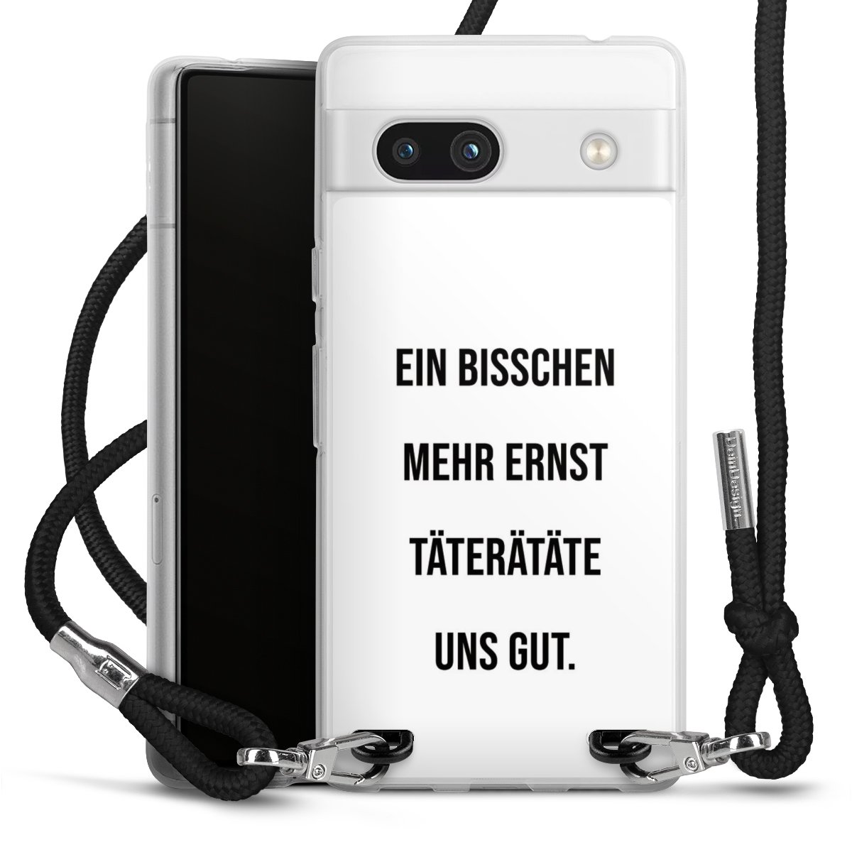Die transparente Silikonhülle besteht aus flexiblen TPU (thermoplastisches Polyurethan) und bietet zugleich robusten Schutz. Durch das langlebige, bruchsichere Material ist die Hülle biegsam und formbeständig zugleich. Das stylische Trend-Accessoire liegt griffig in der Hand und wird optimal von der Handykette aus Stoff (Polyester) ergänzt. Das geflochtene Stoffband ist ca. 1,70 Meter lang mit einem Durchmesser von ca. 0,5cm. Aufgrund der besonderen Knotentechnik ist das Band durch einfaches Ziehen in der Länge verstellbar, damit Du es individuell nach Deinen Wünschen anpassen kannst. Das praktische Case zum Umhängen ist mit dem Stoffband in den Farben Schwarz, Rot, Rosa, Grau, Senfgelb, Bordeaux und Royalblau erhältlich. Die Enden des Stoffbandes sind mit metallischen Endkappen umfasst und somit sicher vor dem Ausfransen geschützt.