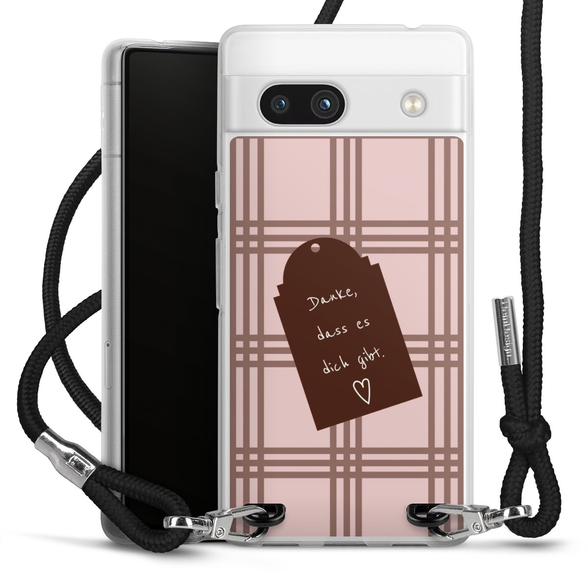 Habe Dein Handy, dank der flexiblen Silikon Handyhülle zum Umhängen mit der Handykette aus Stoff, immer griffbereit.