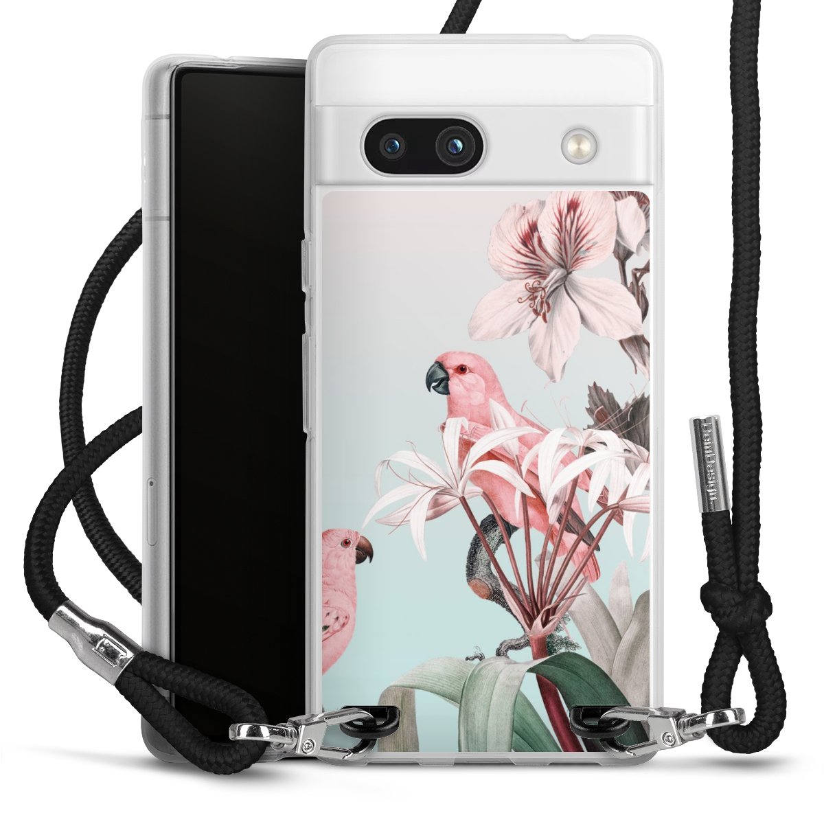 Die transparente Silikonhülle besteht aus flexiblen TPU (thermoplastisches Polyurethan) und bietet zugleich robusten Schutz. Durch das langlebige, bruchsichere Material ist die Hülle biegsam und formbeständig zugleich. Das stylische Trend-Accessoire liegt griffig in der Hand und wird optimal von der Handykette aus Stoff (Polyester) ergänzt. Das geflochtene Stoffband ist ca. 1,70 Meter lang mit einem Durchmesser von ca. 0,5cm. Aufgrund der besonderen Knotentechnik ist das Band durch einfaches Ziehen in der Länge verstellbar, damit Du es individuell nach Deinen Wünschen anpassen kannst. Das praktische Case zum Umhängen ist mit dem Stoffband in den Farben Schwarz, Rot, Rosa, Grau, Senfgelb, Bordeaux und Royalblau erhältlich. Die Enden des Stoffbandes sind mit metallischen Endkappen umfasst und somit sicher vor dem Ausfransen geschützt.