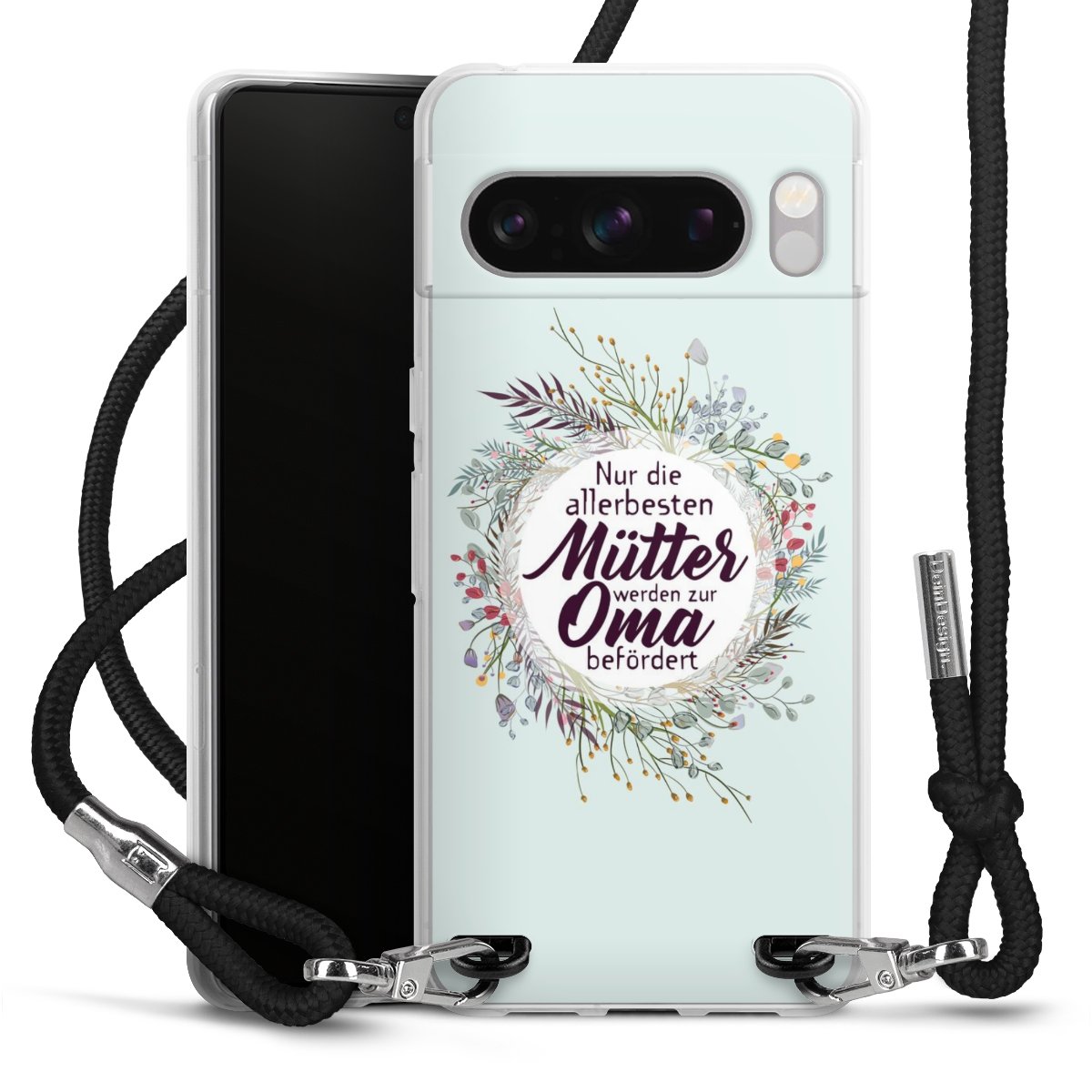 Habe Dein Handy, dank der flexiblen Silikon Handyhülle zum Umhängen mit der Handykette aus Stoff, immer griffbereit.