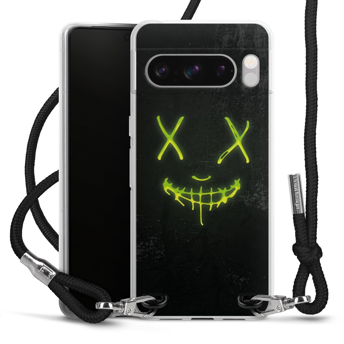 Habe Dein Handy, dank der flexiblen Silikon Handyhülle zum Umhängen mit der Handykette aus Stoff, immer griffbereit.