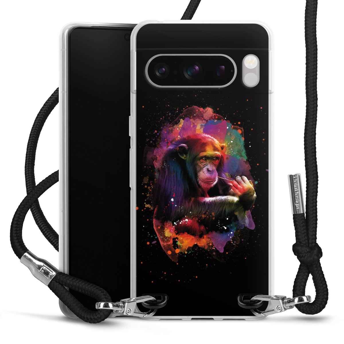 Habe Dein Handy, dank der flexiblen Silikon Handyhülle zum Umhängen mit der Handykette aus Stoff, immer griffbereit.