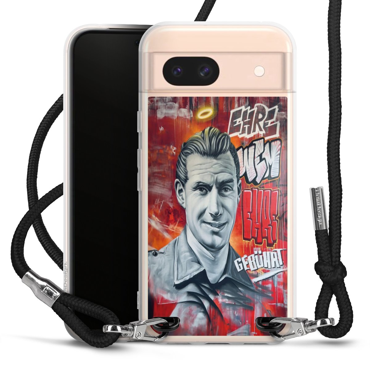 Bei dieser Handyhülle nutzen wir das solide Direktdruck-Verfahren, weshalb der Druckbereich ausschließlich die Rückseite umfasst und der Rand hingegen unbedruckt bleibt. Das Case zum Umhängen kann sowohl unbedruckt, als auch vollflächig oder partiell bedruckt bestellt werden. Wähle für Dein Design entweder eines unserer exklusiven Shop-Motive, oder werde kreativ und gestalte Dein Wunschdesign zum Beispiel mit Fotos und Overlays selbst. Designe Dir Dein persönliches Trend-Accessoire und setze ein individuelles Statement auf den Straßen!
