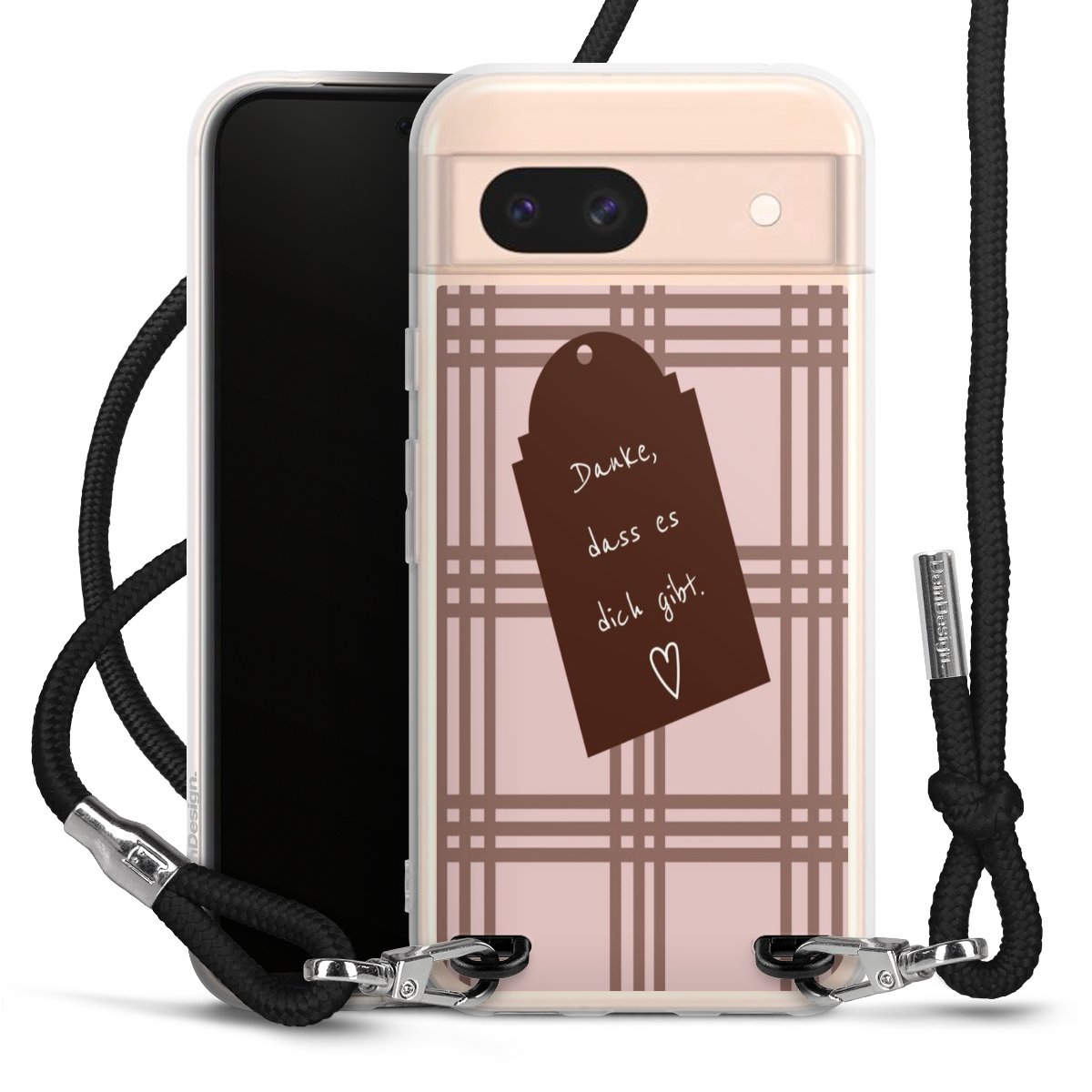 Habe Dein Handy, dank der flexiblen Silikon Handyhülle zum Umhängen mit der Handykette aus Stoff, immer griffbereit.