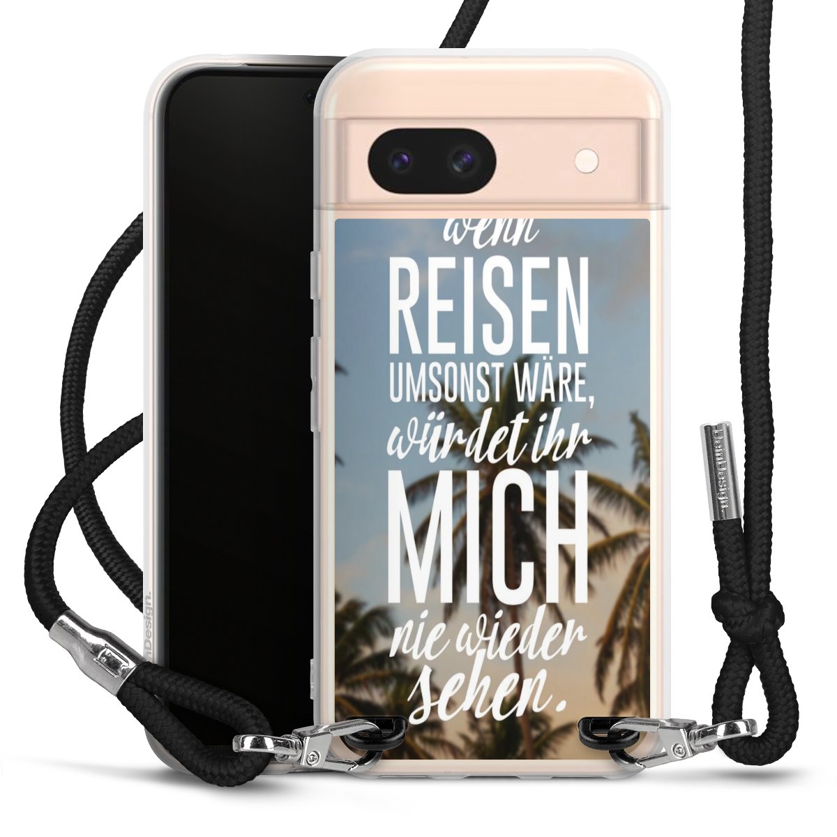 Bei dieser Handyhülle nutzen wir das solide Direktdruck-Verfahren, weshalb der Druckbereich ausschließlich die Rückseite umfasst und der Rand hingegen unbedruckt bleibt. Das Case zum Umhängen kann sowohl unbedruckt, als auch vollflächig oder partiell bedruckt bestellt werden. Wähle für Dein Design entweder eines unserer exklusiven Shop-Motive, oder werde kreativ und gestalte Dein Wunschdesign zum Beispiel mit Fotos und Overlays selbst. Designe Dir Dein persönliches Trend-Accessoire und setze ein individuelles Statement auf den Straßen!