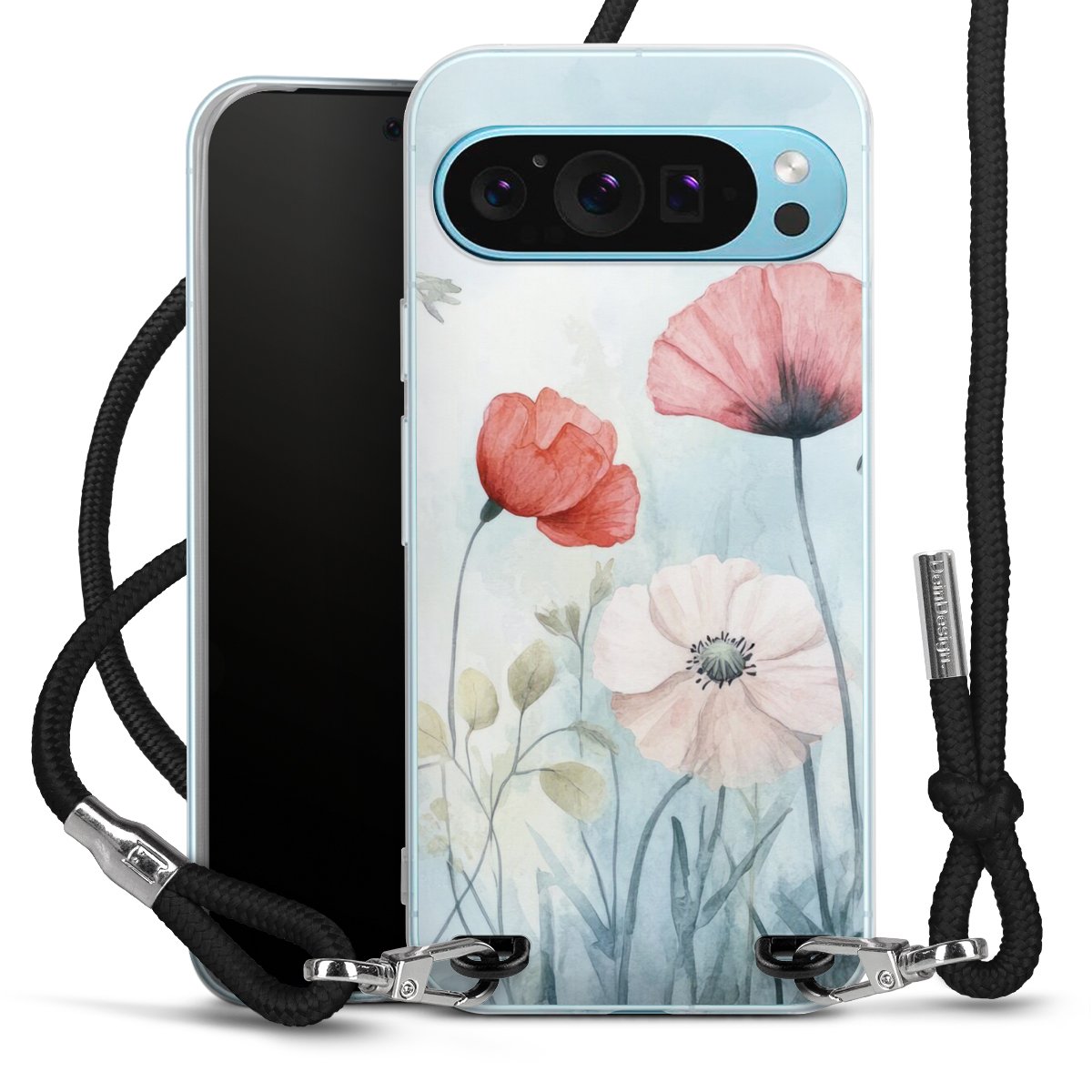 Habe Dein Handy, dank der flexiblen Silikon Handyhülle zum Umhängen mit der Handykette aus Stoff, immer griffbereit.