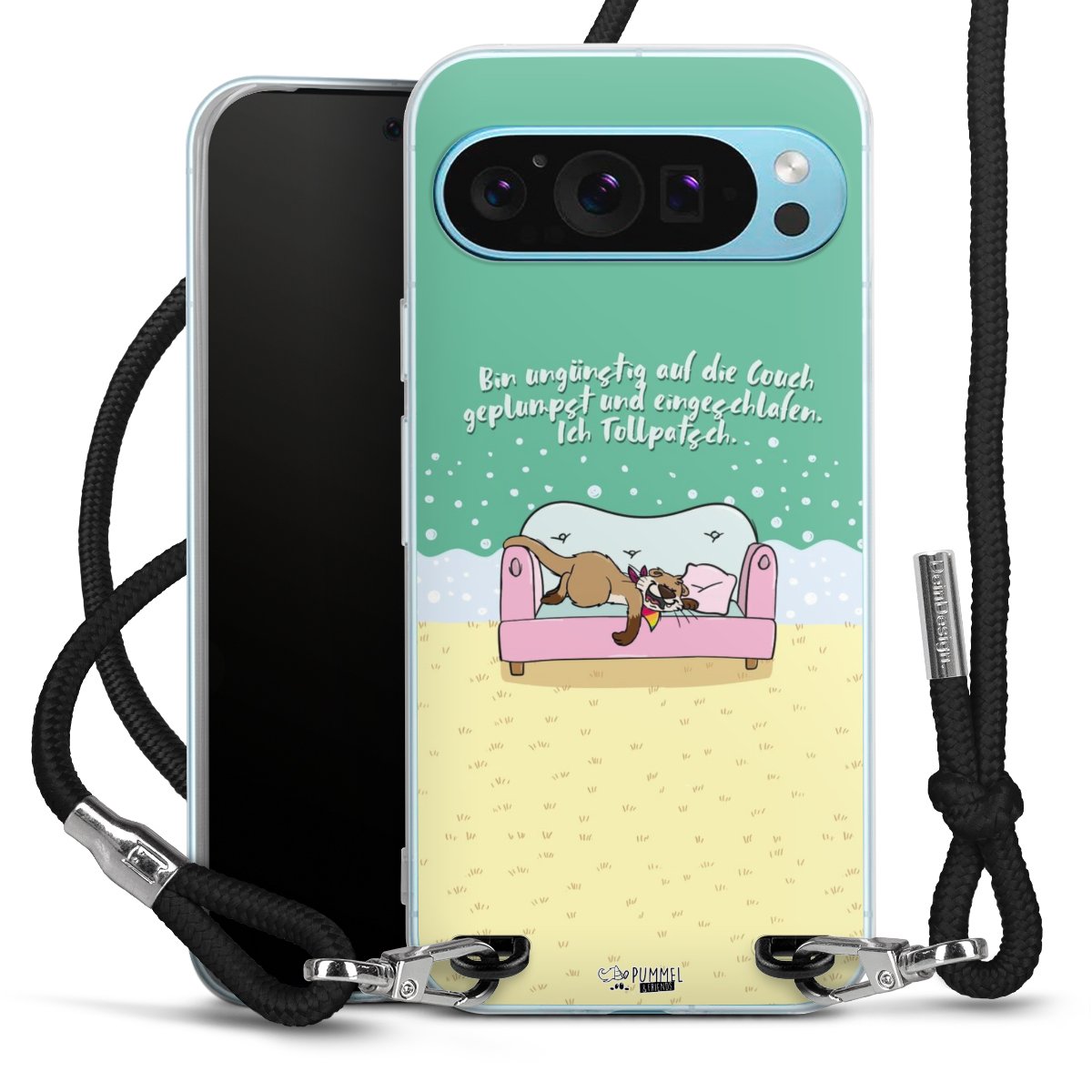 Habe Dein Handy, dank der flexiblen Silikon Handyhülle zum Umhängen mit der Handykette aus Stoff, immer griffbereit.