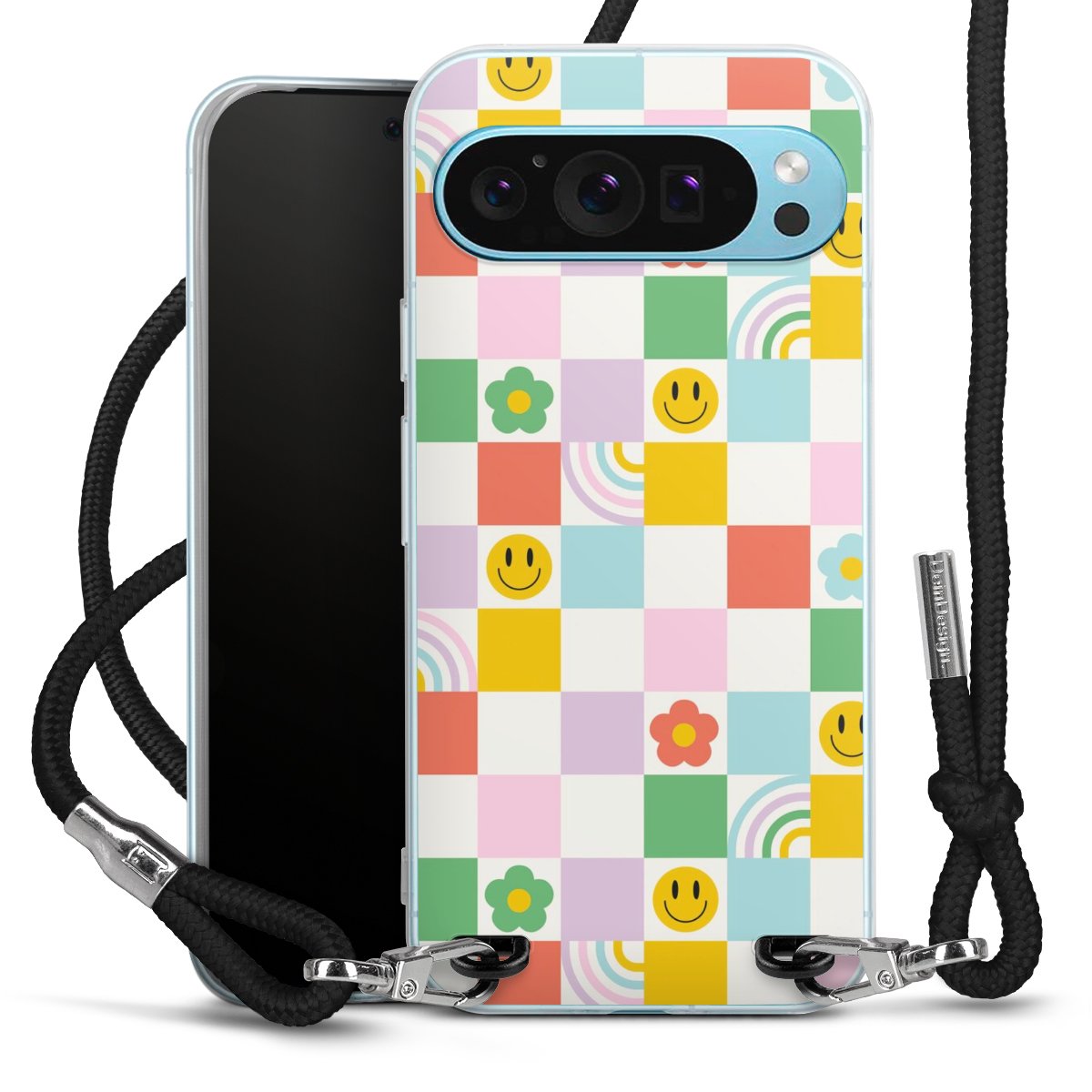 Habe Dein Handy, dank der flexiblen Silikon Handyhülle zum Umhängen mit der Handykette aus Stoff, immer griffbereit.