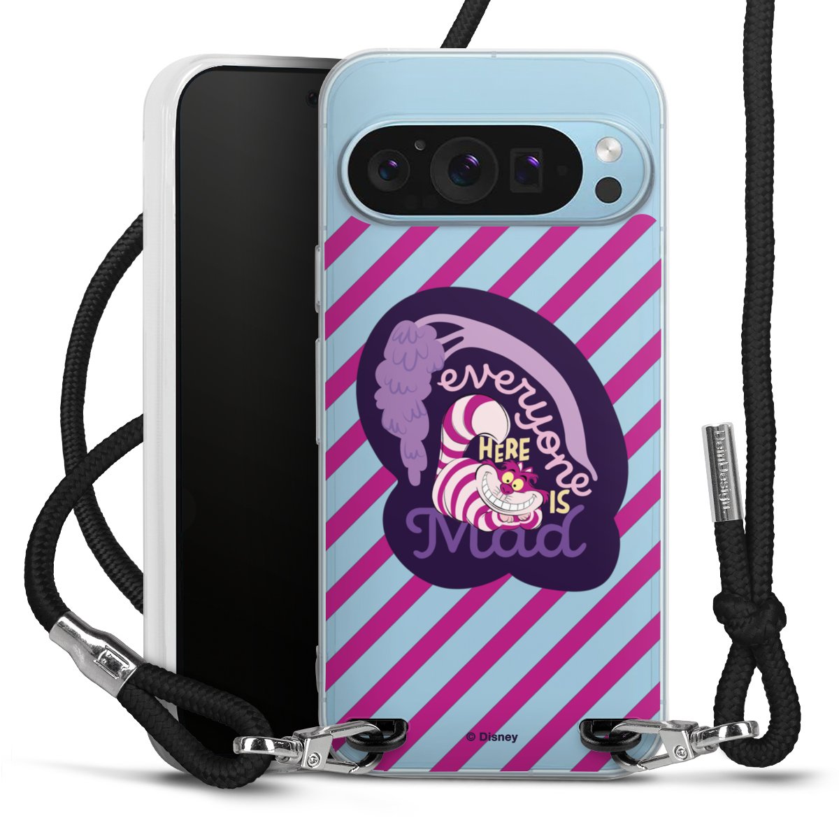 Die transparente Silikonhülle besteht aus flexiblen TPU (thermoplastisches Polyurethan) und bietet zugleich robusten Schutz. Durch das langlebige, bruchsichere Material ist die Hülle biegsam und formbeständig zugleich. Das stylische Trend-Accessoire liegt griffig in der Hand und wird optimal von der Handykette aus Stoff (Polyester) ergänzt. Das geflochtene Stoffband ist ca. 1,70 Meter lang mit einem Durchmesser von ca. 0,5cm. Aufgrund der besonderen Knotentechnik ist das Band durch einfaches Ziehen in der Länge verstellbar, damit Du es individuell nach Deinen Wünschen anpassen kannst. Das praktische Case zum Umhängen ist mit dem Stoffband in den Farben Schwarz, Rot, Rosa, Grau, Senfgelb, Bordeaux und Royalblau erhältlich. Die Enden des Stoffbandes sind mit metallischen Endkappen umfasst und somit sicher vor dem Ausfransen geschützt.