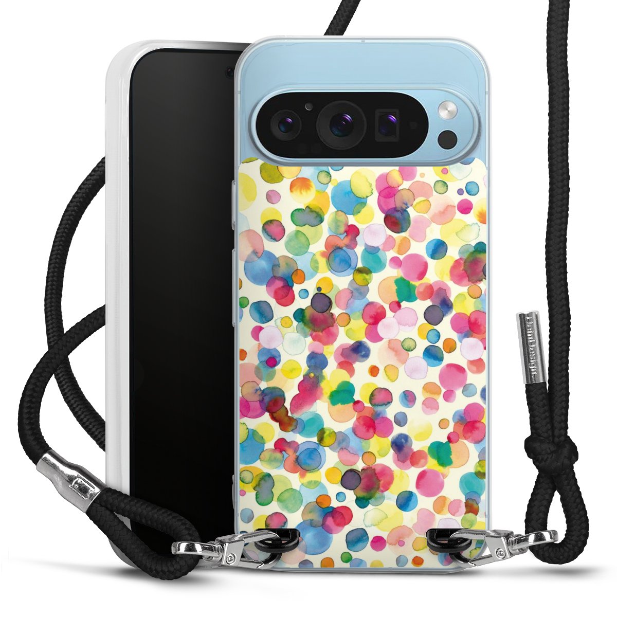 Habe Dein Handy, dank der flexiblen Silikon Handyhülle zum Umhängen mit der Handykette aus Stoff, immer griffbereit.