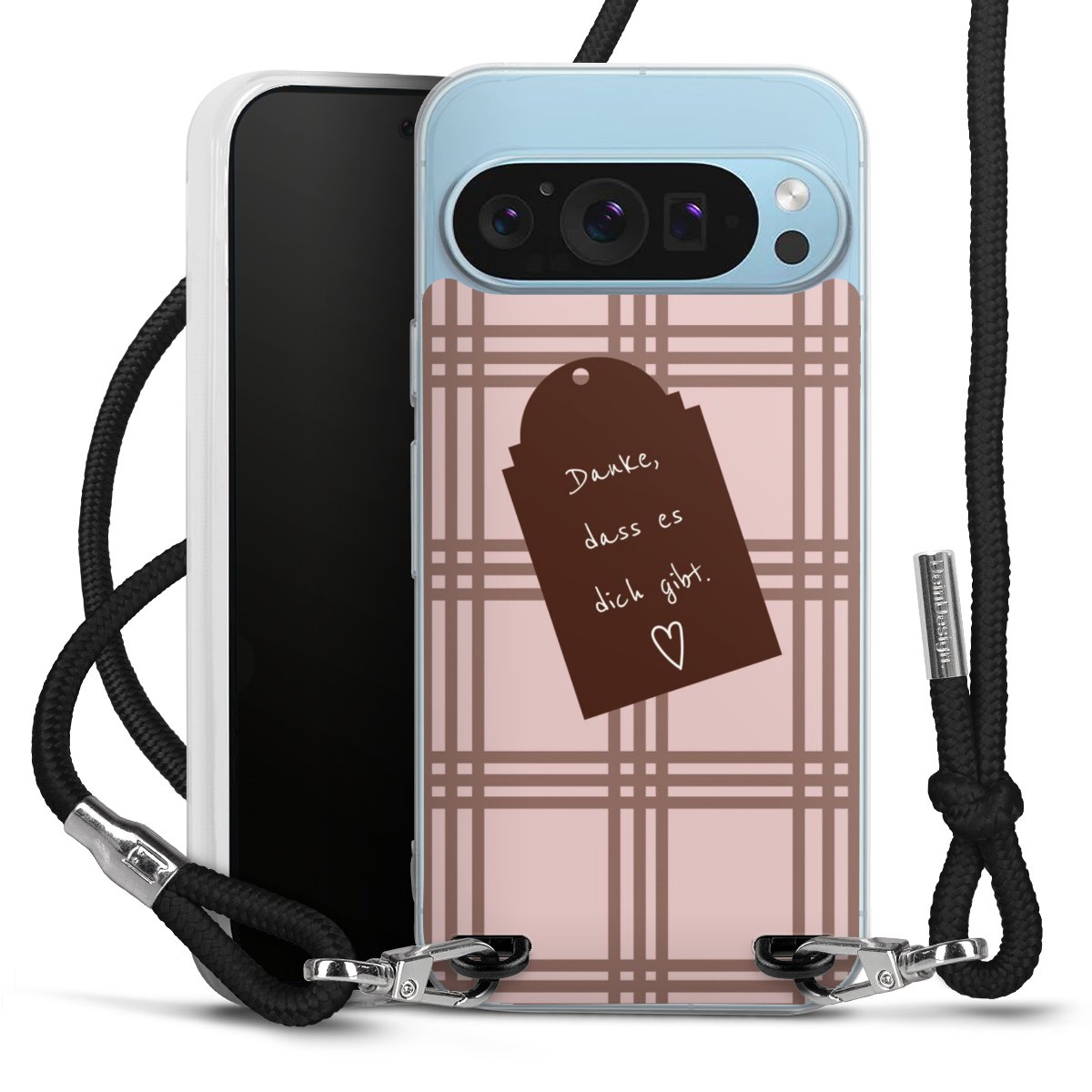 Habe Dein Handy, dank der flexiblen Silikon Handyhülle zum Umhängen mit der Handykette aus Stoff, immer griffbereit.