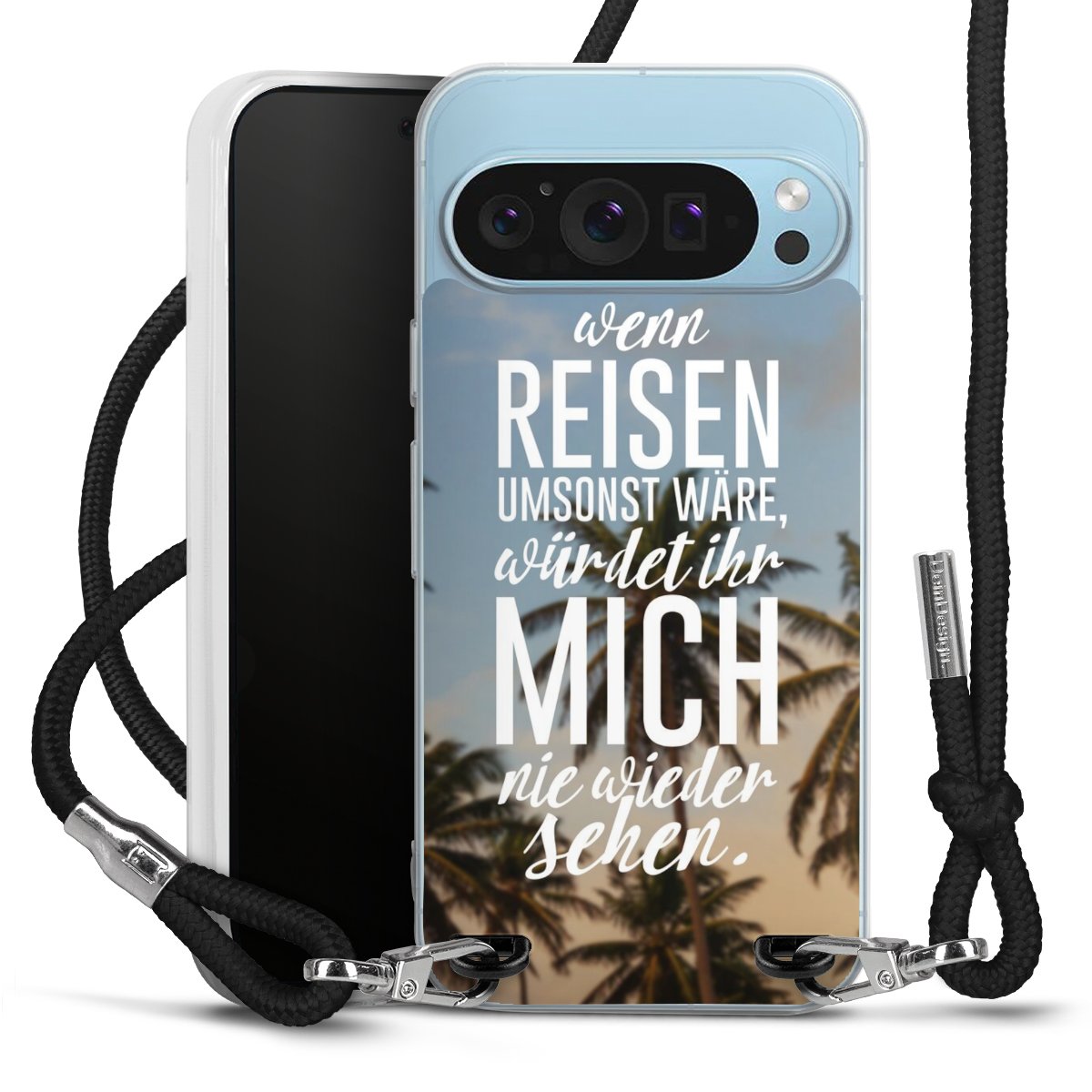 Bei dieser Handyhülle nutzen wir das solide Direktdruck-Verfahren, weshalb der Druckbereich ausschließlich die Rückseite umfasst und der Rand hingegen unbedruckt bleibt. Das Case zum Umhängen kann sowohl unbedruckt, als auch vollflächig oder partiell bedruckt bestellt werden. Wähle für Dein Design entweder eines unserer exklusiven Shop-Motive, oder werde kreativ und gestalte Dein Wunschdesign zum Beispiel mit Fotos und Overlays selbst. Designe Dir Dein persönliches Trend-Accessoire und setze ein individuelles Statement auf den Straßen!