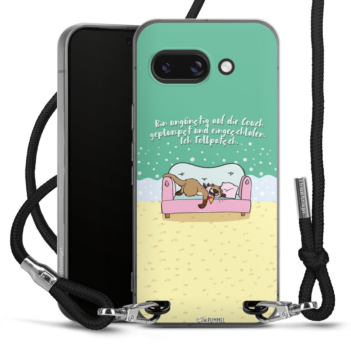Habe Dein Handy, dank der flexiblen Silikon Handyhülle zum Umhängen mit der Handykette aus Stoff, immer griffbereit.