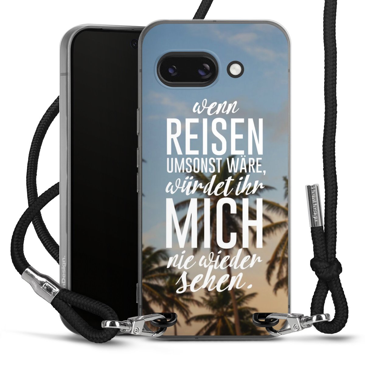 Bei dieser Handyhülle nutzen wir das solide Direktdruck-Verfahren, weshalb der Druckbereich ausschließlich die Rückseite umfasst und der Rand hingegen unbedruckt bleibt. Das Case zum Umhängen kann sowohl unbedruckt, als auch vollflächig oder partiell bedruckt bestellt werden. Wähle für Dein Design entweder eines unserer exklusiven Shop-Motive, oder werde kreativ und gestalte Dein Wunschdesign zum Beispiel mit Fotos und Overlays selbst. Designe Dir Dein persönliches Trend-Accessoire und setze ein individuelles Statement auf den Straßen!