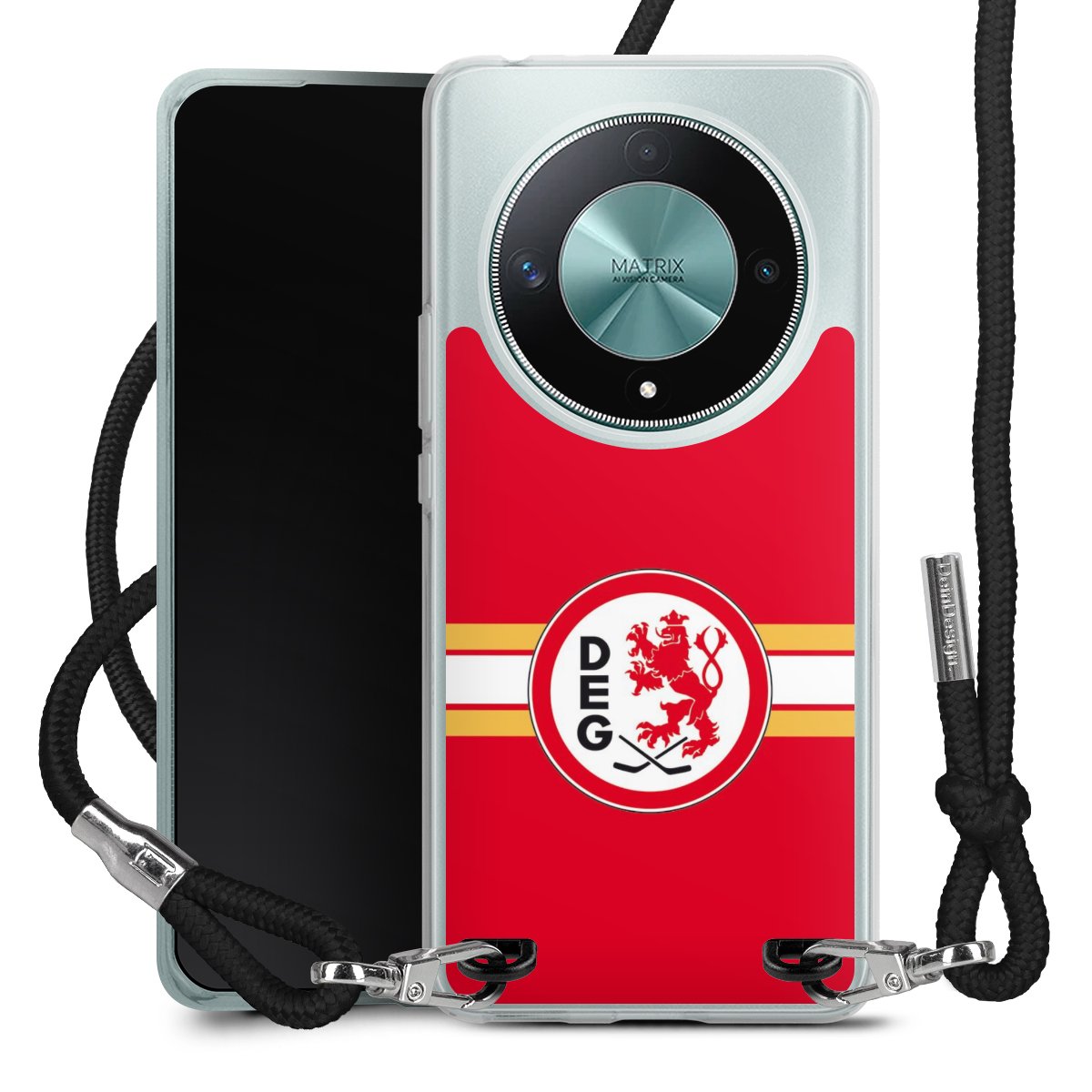 Bei dieser Handyhülle nutzen wir das solide Direktdruck-Verfahren, weshalb der Druckbereich ausschließlich die Rückseite umfasst und der Rand hingegen unbedruckt bleibt. Das Case zum Umhängen kann sowohl unbedruckt, als auch vollflächig oder partiell bedruckt bestellt werden. Wähle für Dein Design entweder eines unserer exklusiven Shop-Motive, oder werde kreativ und gestalte Dein Wunschdesign zum Beispiel mit Fotos und Overlays selbst. Designe Dir Dein persönliches Trend-Accessoire und setze ein individuelles Statement auf den Straßen!