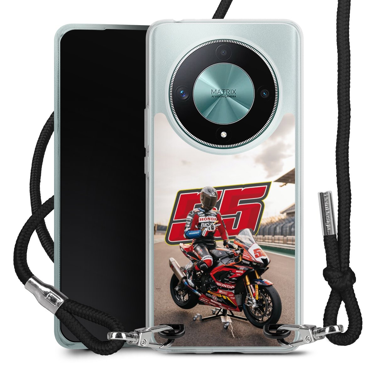 Bei dieser Handyhülle nutzen wir das solide Direktdruck-Verfahren, weshalb der Druckbereich ausschließlich die Rückseite umfasst und der Rand hingegen unbedruckt bleibt. Das Case zum Umhängen kann sowohl unbedruckt, als auch vollflächig oder partiell bedruckt bestellt werden. Wähle für Dein Design entweder eines unserer exklusiven Shop-Motive, oder werde kreativ und gestalte Dein Wunschdesign zum Beispiel mit Fotos und Overlays selbst. Designe Dir Dein persönliches Trend-Accessoire und setze ein individuelles Statement auf den Straßen!