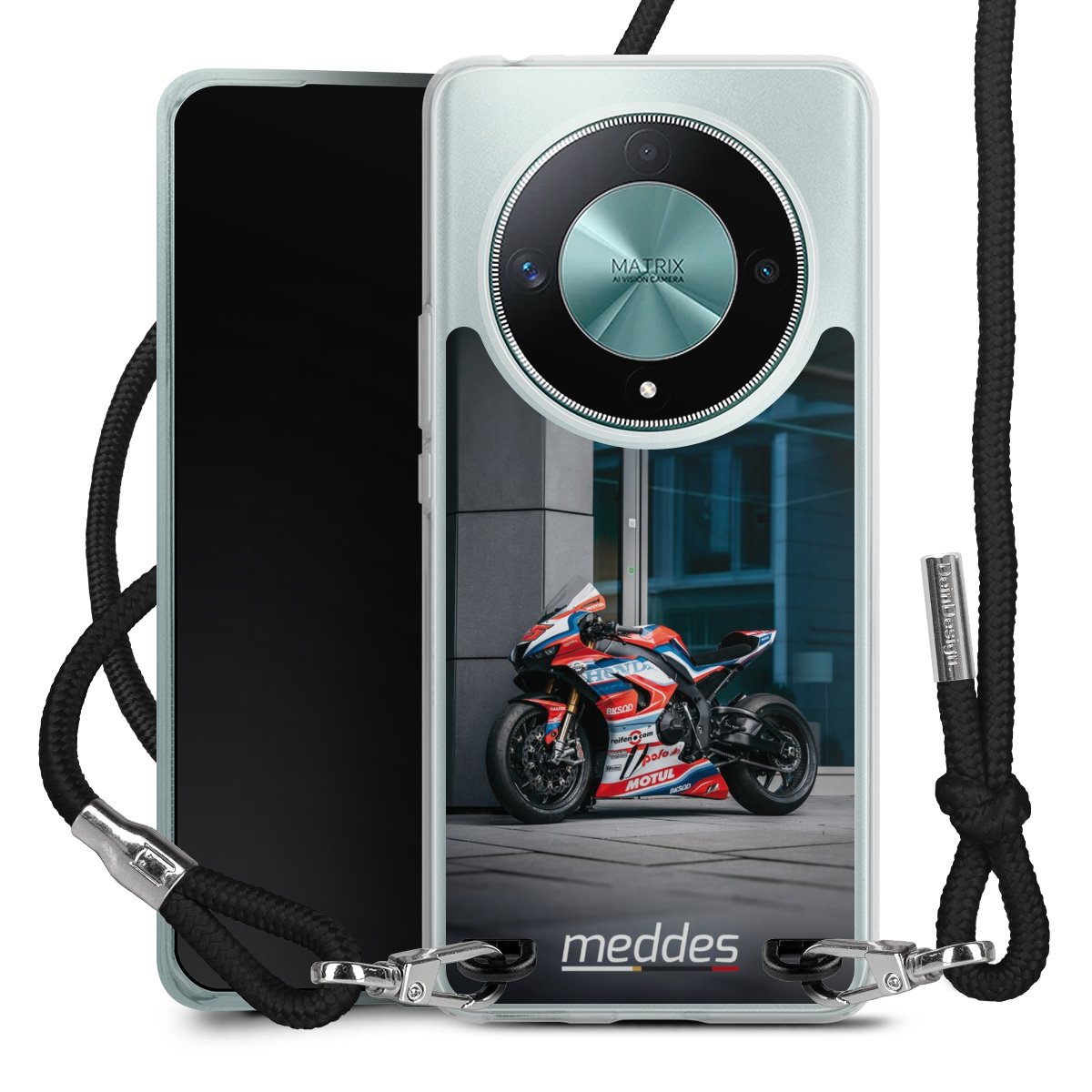 Bei dieser Handyhülle nutzen wir das solide Direktdruck-Verfahren, weshalb der Druckbereich ausschließlich die Rückseite umfasst und der Rand hingegen unbedruckt bleibt. Das Case zum Umhängen kann sowohl unbedruckt, als auch vollflächig oder partiell bedruckt bestellt werden. Wähle für Dein Design entweder eines unserer exklusiven Shop-Motive, oder werde kreativ und gestalte Dein Wunschdesign zum Beispiel mit Fotos und Overlays selbst. Designe Dir Dein persönliches Trend-Accessoire und setze ein individuelles Statement auf den Straßen!