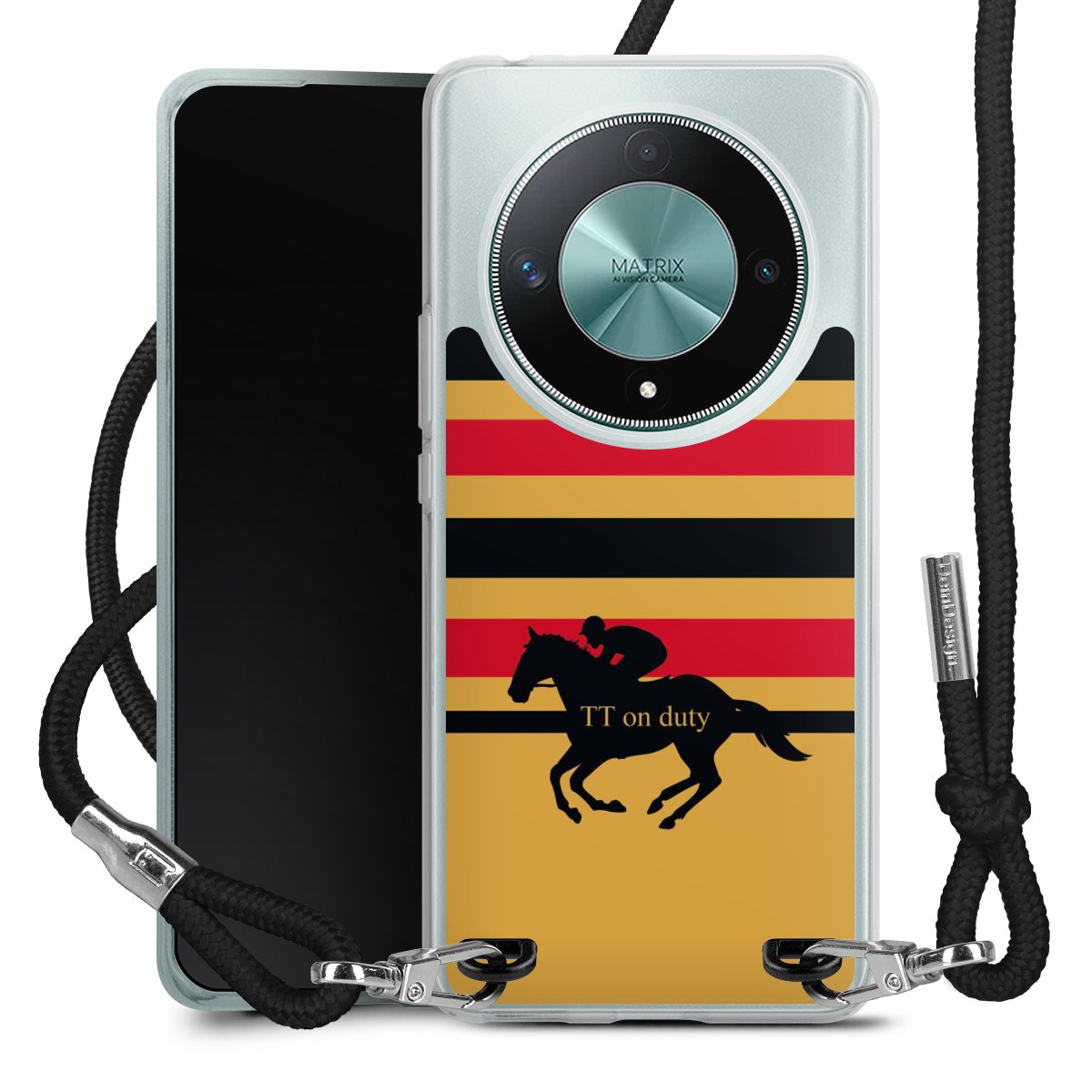 Die transparente Silikonhülle besteht aus flexiblen TPU (thermoplastisches Polyurethan) und bietet zugleich robusten Schutz. Durch das langlebige, bruchsichere Material ist die Hülle biegsam und formbeständig zugleich. Das stylische Trend-Accessoire liegt griffig in der Hand und wird optimal von der Handykette aus Stoff (Polyester) ergänzt. Das geflochtene Stoffband ist ca. 1,70 Meter lang mit einem Durchmesser von ca. 0,5cm. Aufgrund der besonderen Knotentechnik ist das Band durch einfaches Ziehen in der Länge verstellbar, damit Du es individuell nach Deinen Wünschen anpassen kannst. Das praktische Case zum Umhängen ist mit dem Stoffband in den Farben Schwarz, Rot, Rosa, Grau, Senfgelb, Bordeaux und Royalblau erhältlich. Die Enden des Stoffbandes sind mit metallischen Endkappen umfasst und somit sicher vor dem Ausfransen geschützt.