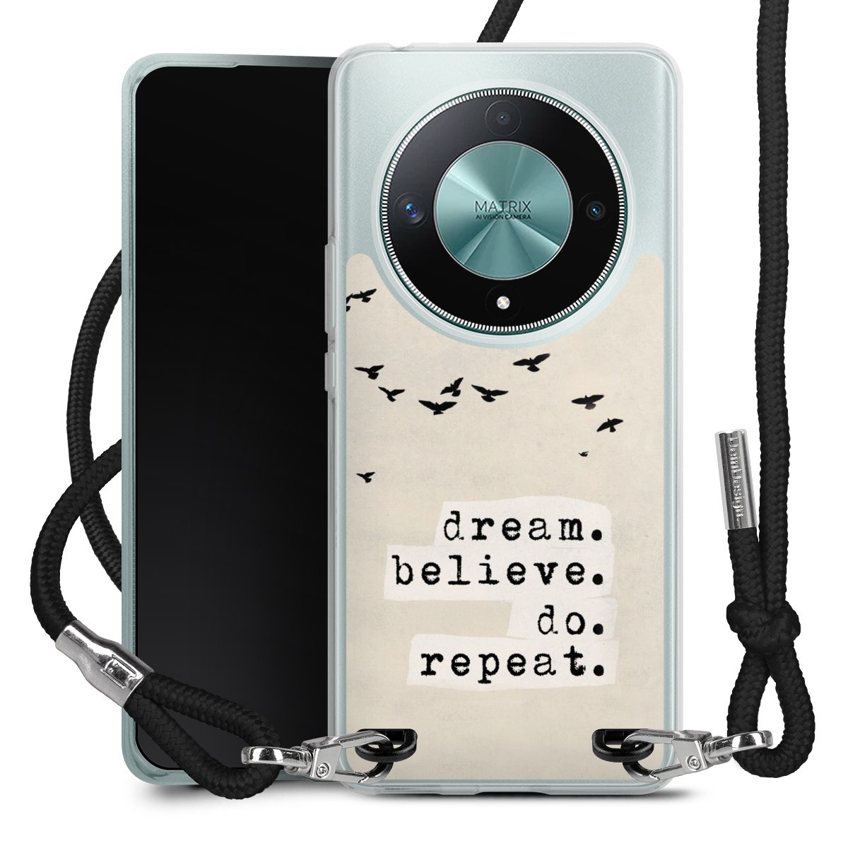 Bei dieser Handyhülle nutzen wir das solide Direktdruck-Verfahren, weshalb der Druckbereich ausschließlich die Rückseite umfasst und der Rand hingegen unbedruckt bleibt. Das Case zum Umhängen kann sowohl unbedruckt, als auch vollflächig oder partiell bedruckt bestellt werden. Wähle für Dein Design entweder eines unserer exklusiven Shop-Motive, oder werde kreativ und gestalte Dein Wunschdesign zum Beispiel mit Fotos und Overlays selbst. Designe Dir Dein persönliches Trend-Accessoire und setze ein individuelles Statement auf den Straßen!