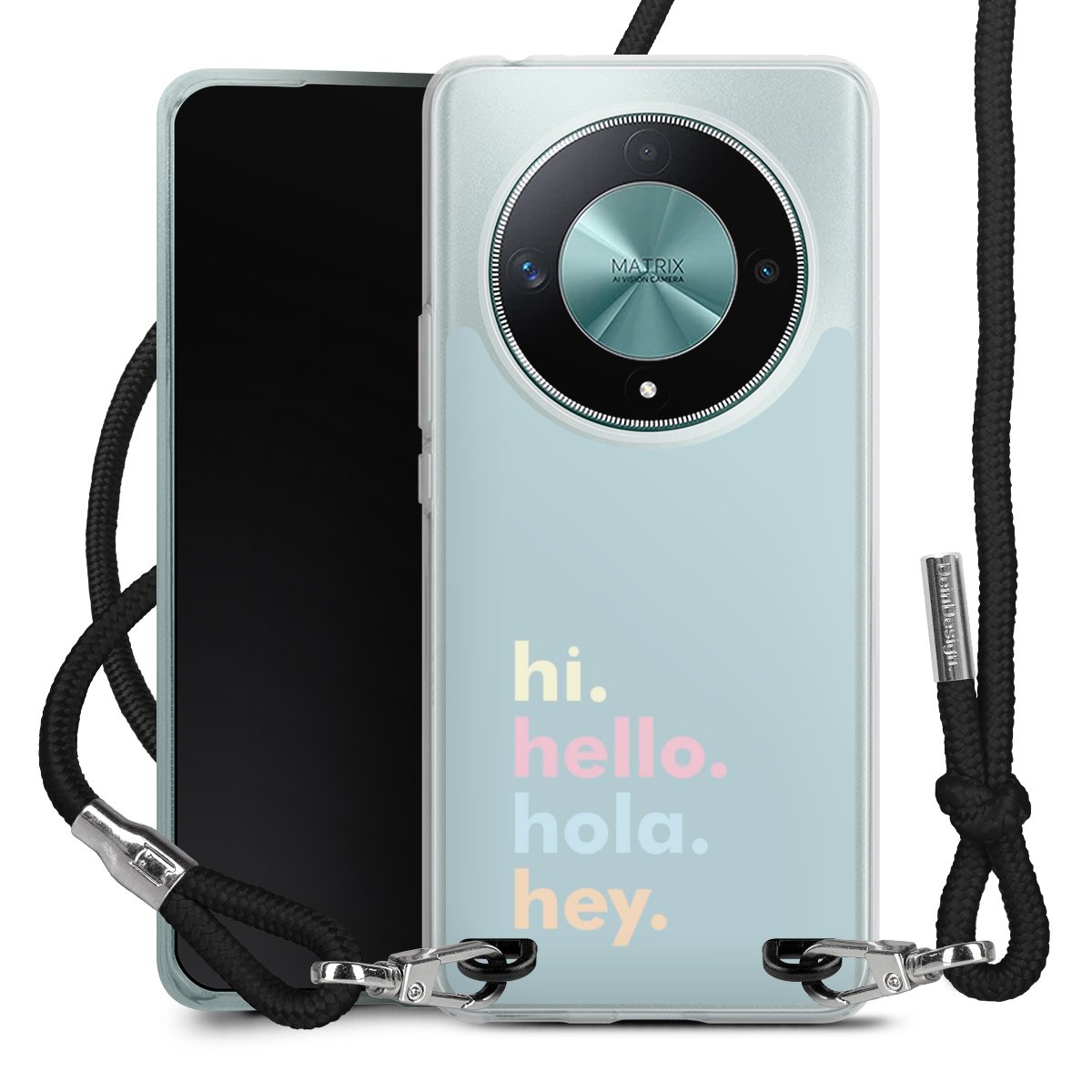 Bei dieser Handyhülle nutzen wir das solide Direktdruck-Verfahren, weshalb der Druckbereich ausschließlich die Rückseite umfasst und der Rand hingegen unbedruckt bleibt. Das Case zum Umhängen kann sowohl unbedruckt, als auch vollflächig oder partiell bedruckt bestellt werden. Wähle für Dein Design entweder eines unserer exklusiven Shop-Motive, oder werde kreativ und gestalte Dein Wunschdesign zum Beispiel mit Fotos und Overlays selbst. Designe Dir Dein persönliches Trend-Accessoire und setze ein individuelles Statement auf den Straßen!