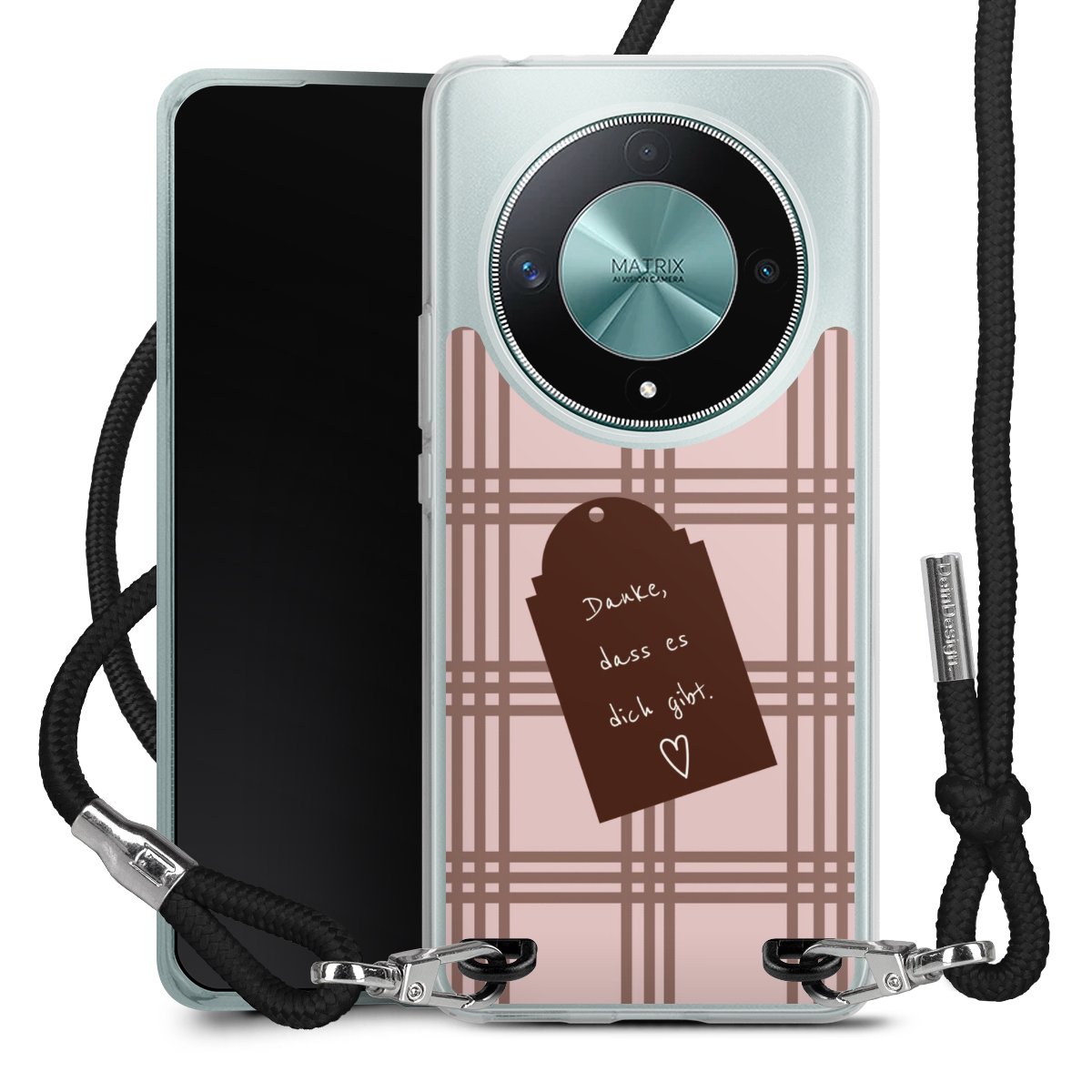 Habe Dein Handy, dank der flexiblen Silikon Handyhülle zum Umhängen mit der Handykette aus Stoff, immer griffbereit.