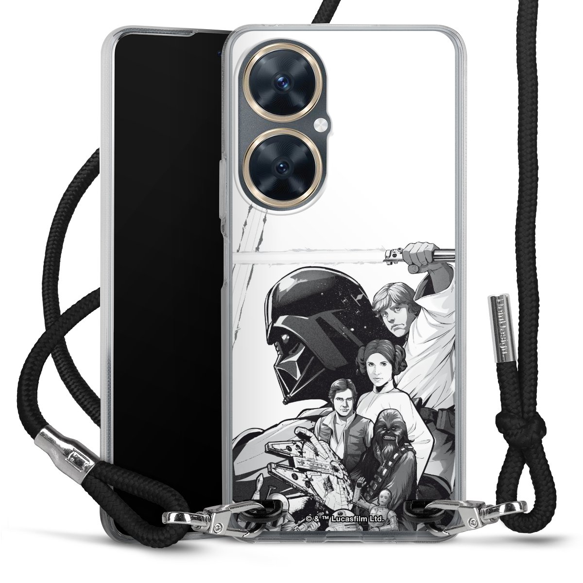 Darth Vader, C3PO, R2D2 und Meister Yoda findest Du in unserem Star Wars Shop auf DeinDesign. Natürlich gibt es auch Star Wars Handyhüllen mit den legendären Charakteren Luke Skywalker, Prinzessin Leia und Han Solo, den Helden der ersten Saga. Wer jedoch die Hauptfiguren der neuen Star Wars Filme ins Herz geschlossen hat, kann auch Finn und Rey mit ihren mächtigen Waffen auf der Rückseite seines Smartphones haben. Die vielseitigen Schutzhüllen in verschiedenen Ausführungen sind das perfekte Geschenk für alle Star Wars Fans, die ihrem Smartphone eine individuelle Note verleihen wollen.