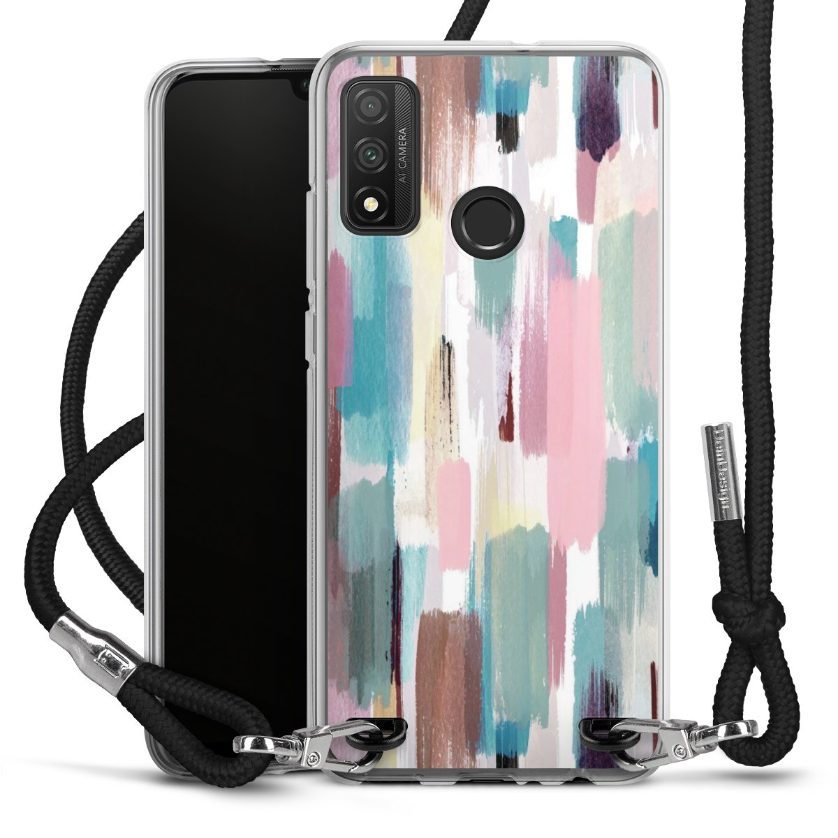 Habe Dein Handy, dank der flexiblen Silikon Handyhülle zum Umhängen mit der Handykette aus Stoff, immer griffbereit.