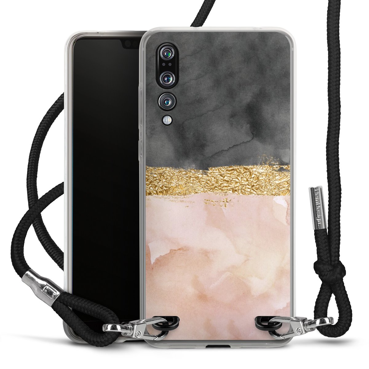 Habe Dein Handy, dank der flexiblen Silikon Handyhülle zum Umhängen mit der Handykette aus Stoff, immer griffbereit.