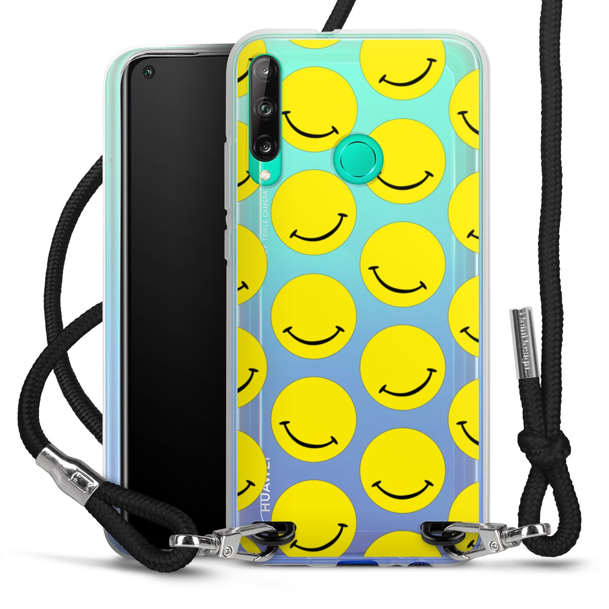 Die transparente Silikonhülle besteht aus flexiblen TPU (thermoplastisches Polyurethan) und bietet zugleich robusten Schutz. Durch das langlebige, bruchsichere Material ist die Hülle biegsam und formbeständig zugleich. Das stylische Trend-Accessoire liegt griffig in der Hand und wird optimal von der Handykette aus Stoff (Polyester) ergänzt. Das geflochtene Stoffband ist ca. 1,70 Meter lang mit einem Durchmesser von ca. 0,5cm. Aufgrund der besonderen Knotentechnik ist das Band durch einfaches Ziehen in der Länge verstellbar, damit Du es individuell nach Deinen Wünschen anpassen kannst. Das praktische Case zum Umhängen ist mit dem Stoffband in den Farben Schwarz, Rot, Rosa, Grau, Senfgelb, Bordeaux und Royalblau erhältlich. Die Enden des Stoffbandes sind mit metallischen Endkappen umfasst und somit sicher vor dem Ausfransen geschützt.