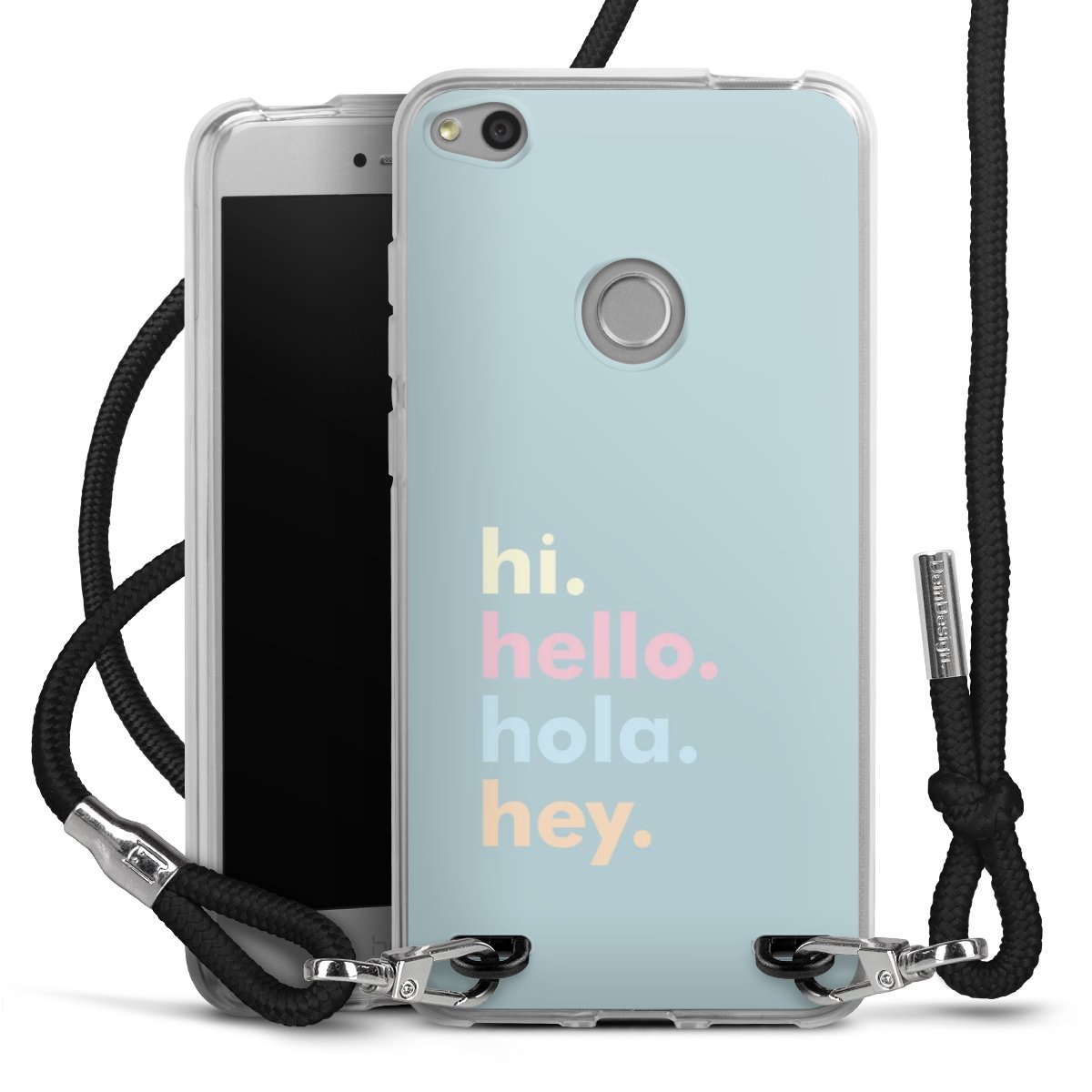 Habe Dein Handy, dank der flexiblen Silikon Handyhülle zum Umhängen mit der Handykette aus Stoff, immer griffbereit.