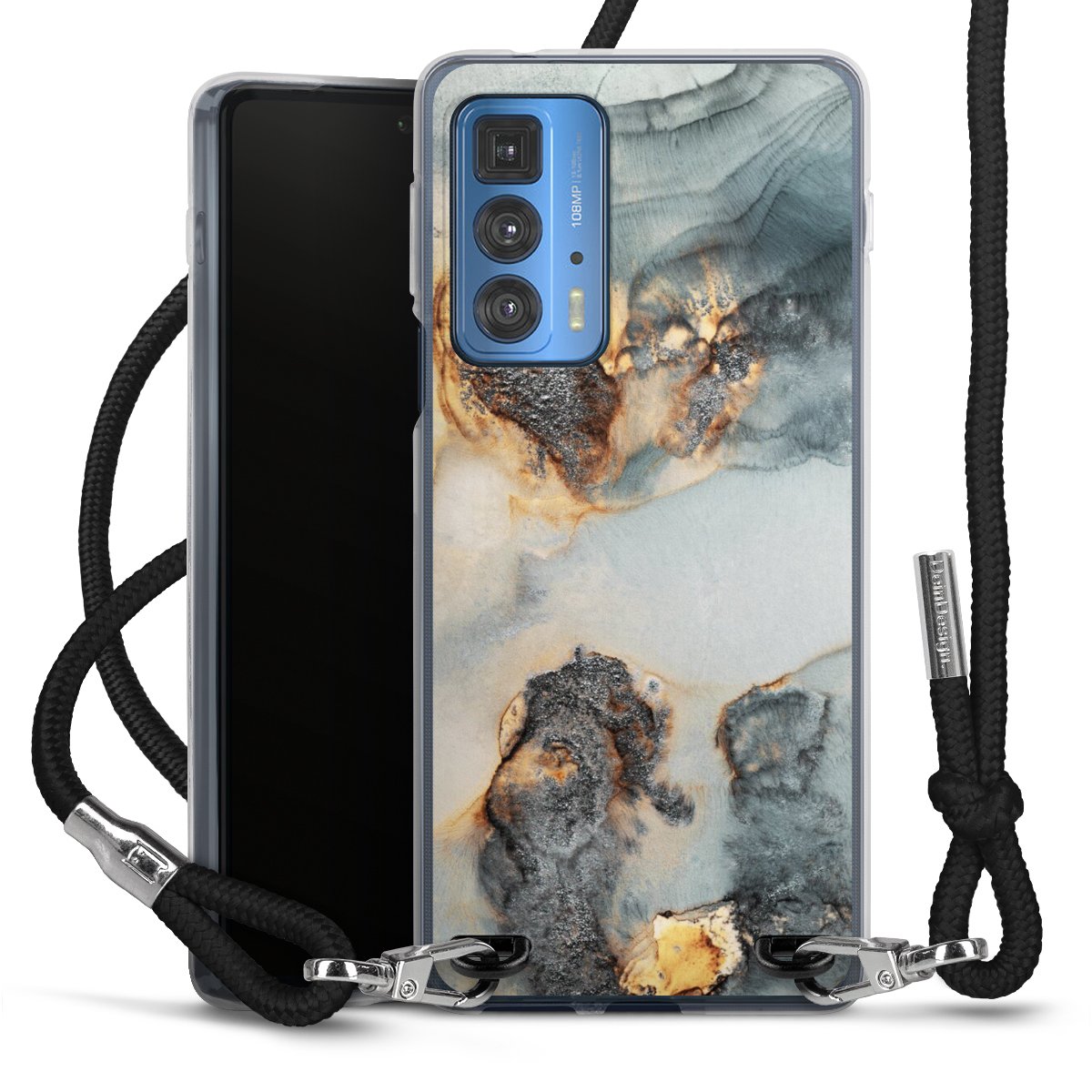 Bei dieser Handyhülle nutzen wir das solide Direktdruck-Verfahren, weshalb der Druckbereich ausschließlich die Rückseite umfasst und der Rand hingegen unbedruckt bleibt. Das Case zum Umhängen kann sowohl unbedruckt, als auch vollflächig oder partiell bedruckt bestellt werden. Wähle für Dein Design entweder eines unserer exklusiven Shop-Motive, oder werde kreativ und gestalte Dein Wunschdesign zum Beispiel mit Fotos und Overlays selbst. Designe Dir Dein persönliches Trend-Accessoire und setze ein individuelles Statement auf den Straßen!