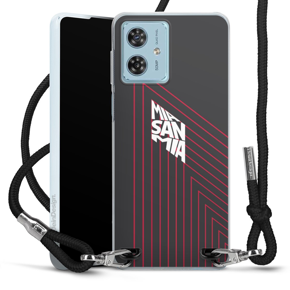 Bei dieser Handyhülle nutzen wir das solide Direktdruck-Verfahren, weshalb der Druckbereich ausschließlich die Rückseite umfasst und der Rand hingegen unbedruckt bleibt. Das Case zum Umhängen kann sowohl unbedruckt, als auch vollflächig oder partiell bedruckt bestellt werden. Wähle für Dein Design entweder eines unserer exklusiven Shop-Motive, oder werde kreativ und gestalte Dein Wunschdesign zum Beispiel mit Fotos und Overlays selbst. Designe Dir Dein persönliches Trend-Accessoire und setze ein individuelles Statement auf den Straßen!