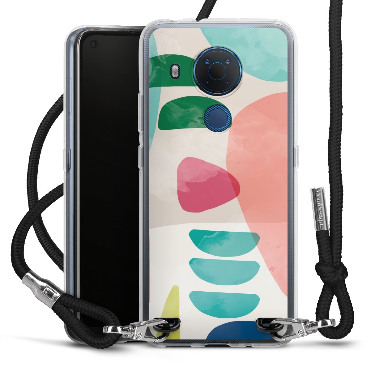 Habe Dein Handy, dank der flexiblen Silikon Handyhülle zum Umhängen mit der Handykette aus Stoff, immer griffbereit.