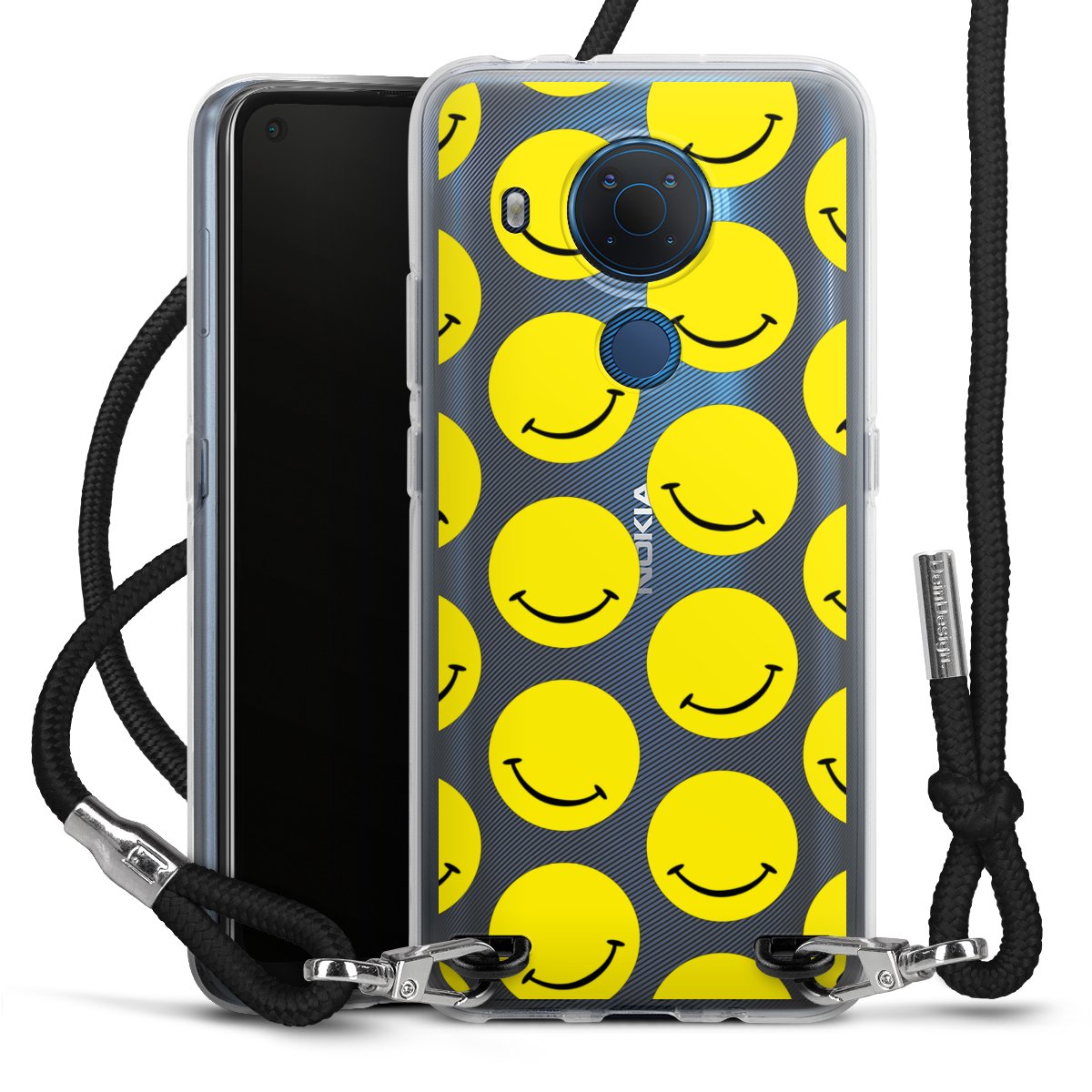 Habe Dein Handy, dank der flexiblen Silikon Handyhülle zum Umhängen mit der Handykette aus Stoff, immer griffbereit.