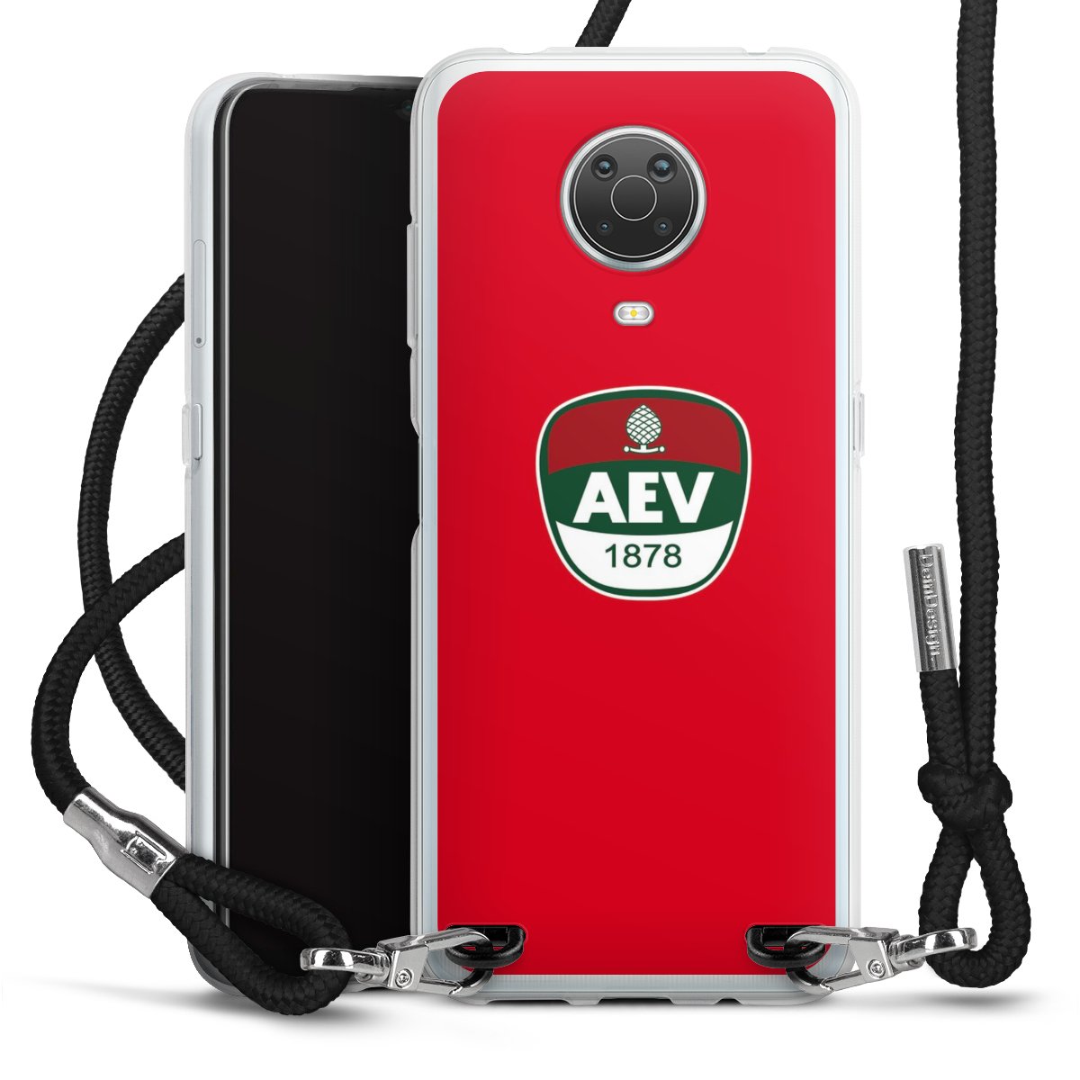 Die transparente Silikonhülle besteht aus flexiblen TPU (thermoplastisches Polyurethan) und bietet zugleich robusten Schutz. Durch das langlebige, bruchsichere Material ist die Hülle biegsam und formbeständig zugleich. Das stylische Trend-Accessoire liegt griffig in der Hand und wird optimal von der Handykette aus Stoff (Polyester) ergänzt. Das geflochtene Stoffband ist ca. 1,70 Meter lang mit einem Durchmesser von ca. 0,5cm. Aufgrund der besonderen Knotentechnik ist das Band durch einfaches Ziehen in der Länge verstellbar, damit Du es individuell nach Deinen Wünschen anpassen kannst. Das praktische Case zum Umhängen ist mit dem Stoffband in den Farben Schwarz, Rot, Rosa, Grau, Senfgelb, Bordeaux und Royalblau erhältlich. Die Enden des Stoffbandes sind mit metallischen Endkappen umfasst und somit sicher vor dem Ausfransen geschützt.