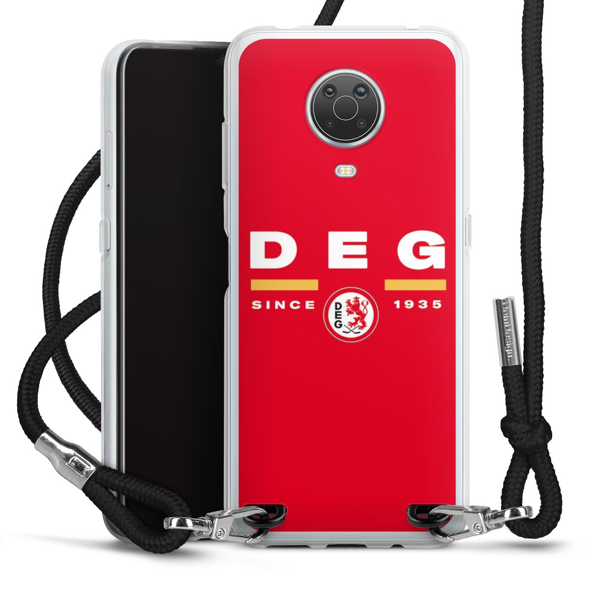 Die transparente Silikonhülle besteht aus flexiblen TPU (thermoplastisches Polyurethan) und bietet zugleich robusten Schutz. Durch das langlebige, bruchsichere Material ist die Hülle biegsam und formbeständig zugleich. Das stylische Trend-Accessoire liegt griffig in der Hand und wird optimal von der Handykette aus Stoff (Polyester) ergänzt. Das geflochtene Stoffband ist ca. 1,70 Meter lang mit einem Durchmesser von ca. 0,5cm. Aufgrund der besonderen Knotentechnik ist das Band durch einfaches Ziehen in der Länge verstellbar, damit Du es individuell nach Deinen Wünschen anpassen kannst. Das praktische Case zum Umhängen ist mit dem Stoffband in den Farben Schwarz, Rot, Rosa, Grau, Senfgelb, Bordeaux und Royalblau erhältlich. Die Enden des Stoffbandes sind mit metallischen Endkappen umfasst und somit sicher vor dem Ausfransen geschützt.