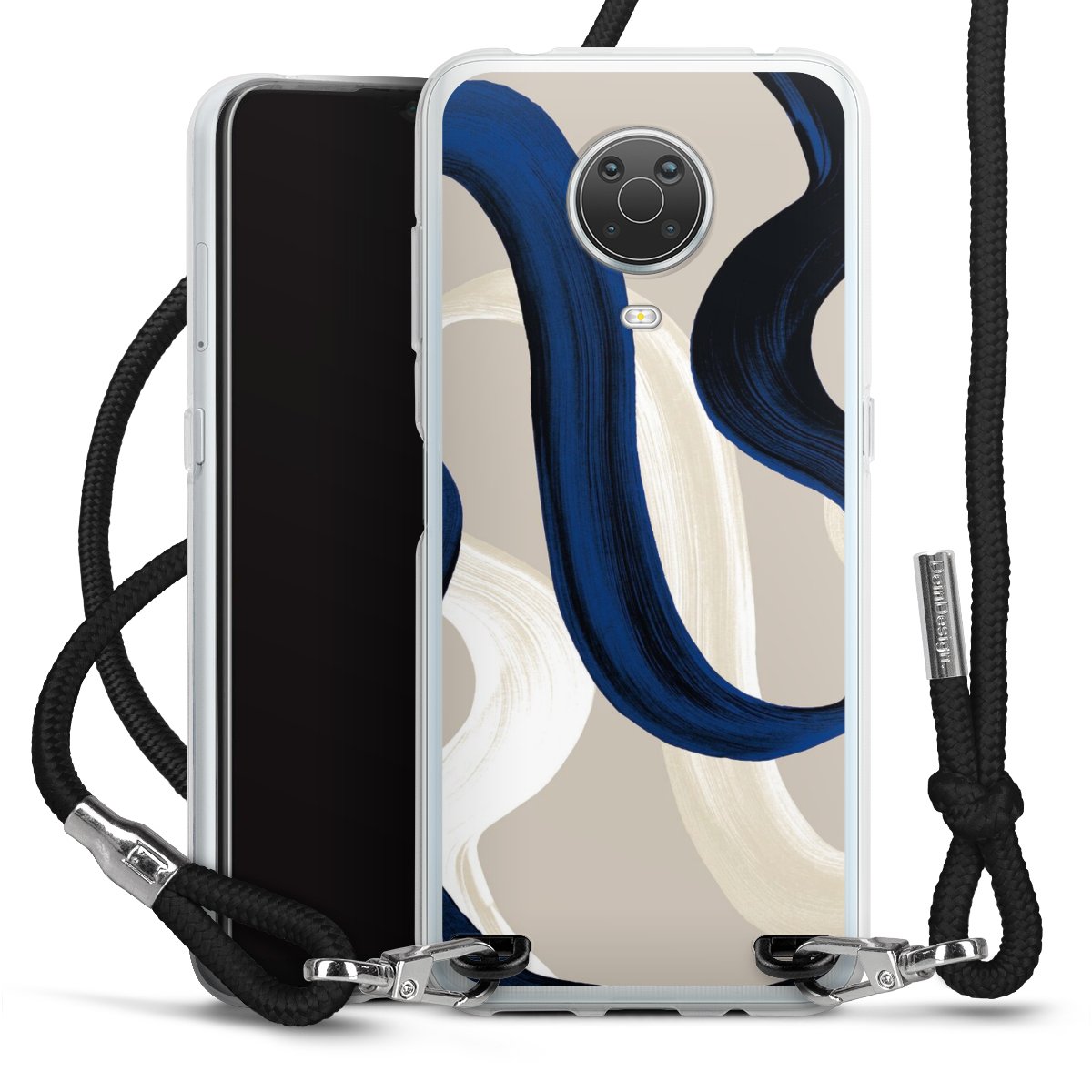 Die transparente Silikonhülle besteht aus flexiblen TPU (thermoplastisches Polyurethan) und bietet zugleich robusten Schutz. Durch das langlebige, bruchsichere Material ist die Hülle biegsam und formbeständig zugleich. Das stylische Trend-Accessoire liegt griffig in der Hand und wird optimal von der Handykette aus Stoff (Polyester) ergänzt. Das geflochtene Stoffband ist ca. 1,70 Meter lang mit einem Durchmesser von ca. 0,5cm. Aufgrund der besonderen Knotentechnik ist das Band durch einfaches Ziehen in der Länge verstellbar, damit Du es individuell nach Deinen Wünschen anpassen kannst. Das praktische Case zum Umhängen ist mit dem Stoffband in den Farben Schwarz, Rot, Rosa, Grau, Senfgelb, Bordeaux und Royalblau erhältlich. Die Enden des Stoffbandes sind mit metallischen Endkappen umfasst und somit sicher vor dem Ausfransen geschützt.