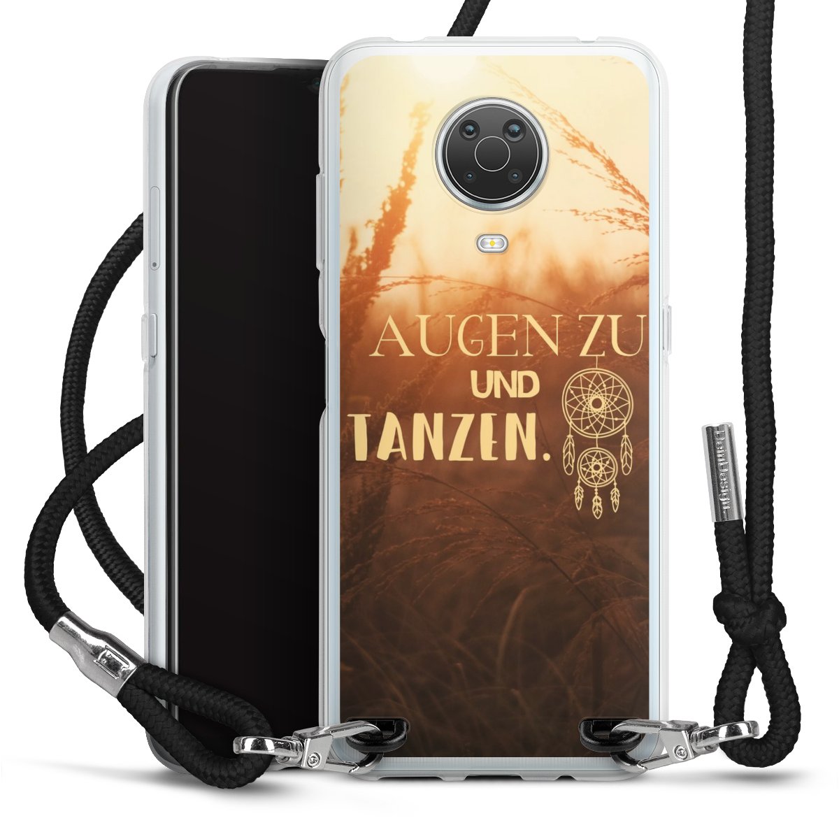 Habe Dein Handy, dank der flexiblen Silikon Handyhülle zum Umhängen mit der Handykette aus Stoff, immer griffbereit.