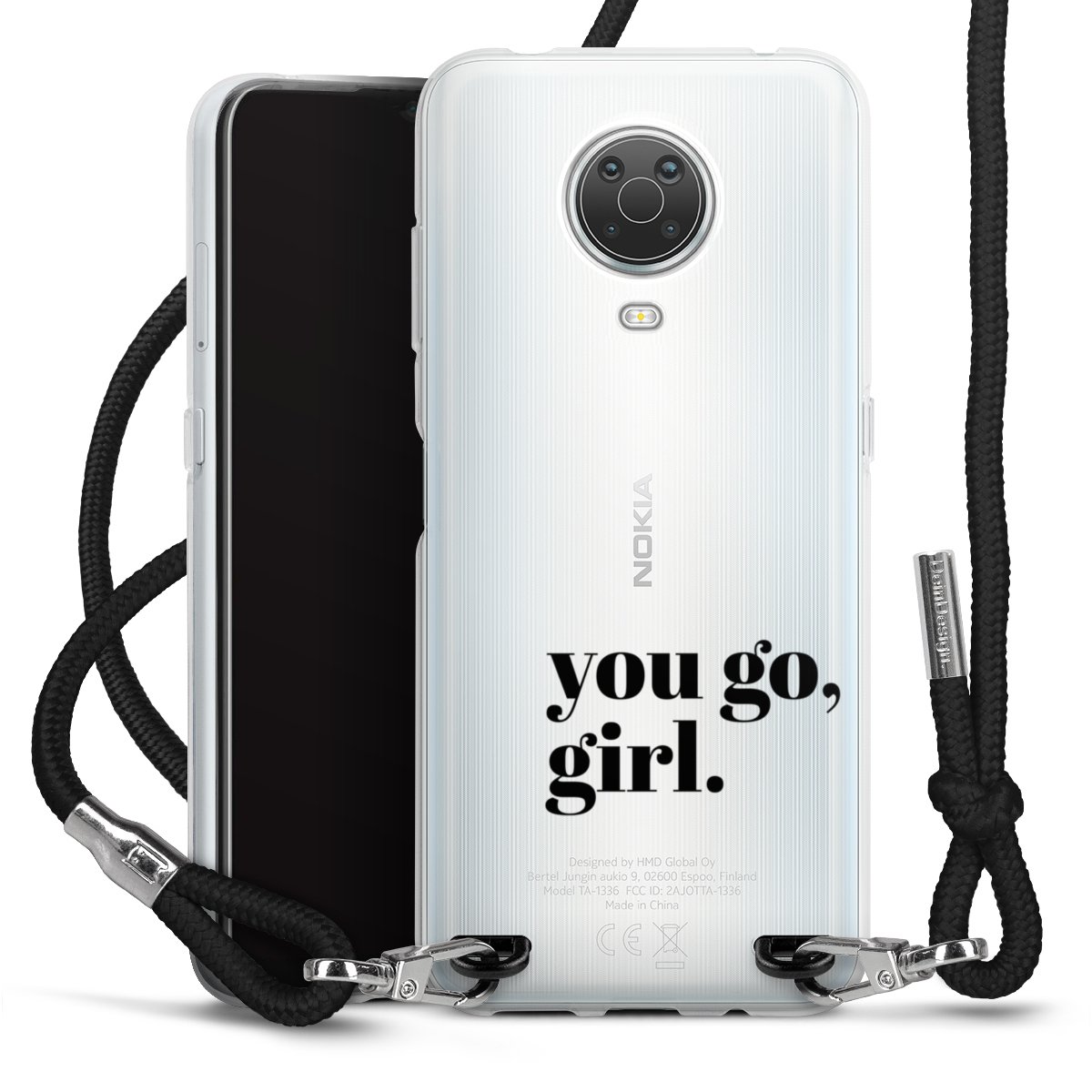 Die transparente Silikonhülle besteht aus flexiblen TPU (thermoplastisches Polyurethan) und bietet zugleich robusten Schutz. Durch das langlebige, bruchsichere Material ist die Hülle biegsam und formbeständig zugleich. Das stylische Trend-Accessoire liegt griffig in der Hand und wird optimal von der Handykette aus Stoff (Polyester) ergänzt. Das geflochtene Stoffband ist ca. 1,70 Meter lang mit einem Durchmesser von ca. 0,5cm. Aufgrund der besonderen Knotentechnik ist das Band durch einfaches Ziehen in der Länge verstellbar, damit Du es individuell nach Deinen Wünschen anpassen kannst. Das praktische Case zum Umhängen ist mit dem Stoffband in den Farben Schwarz, Rot, Rosa, Grau, Senfgelb, Bordeaux und Royalblau erhältlich. Die Enden des Stoffbandes sind mit metallischen Endkappen umfasst und somit sicher vor dem Ausfransen geschützt.